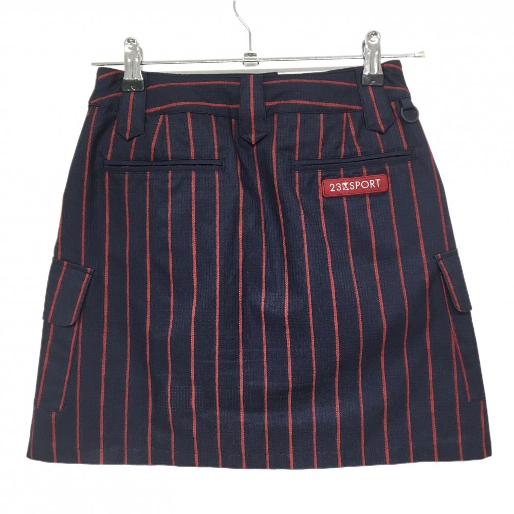 【美品】23区スポーツ カーゴスカート ネイビー×レッド ストライプ レディース 55(XXS) ゴルフウェア 23区