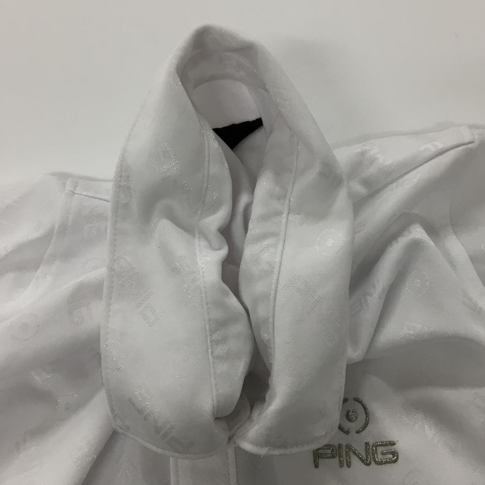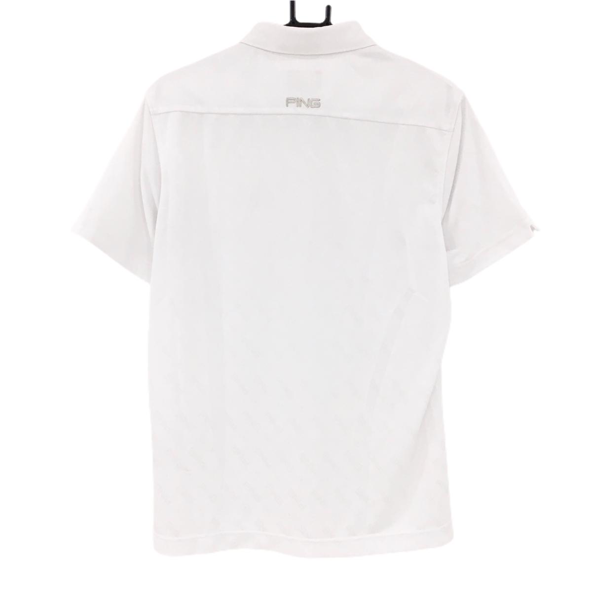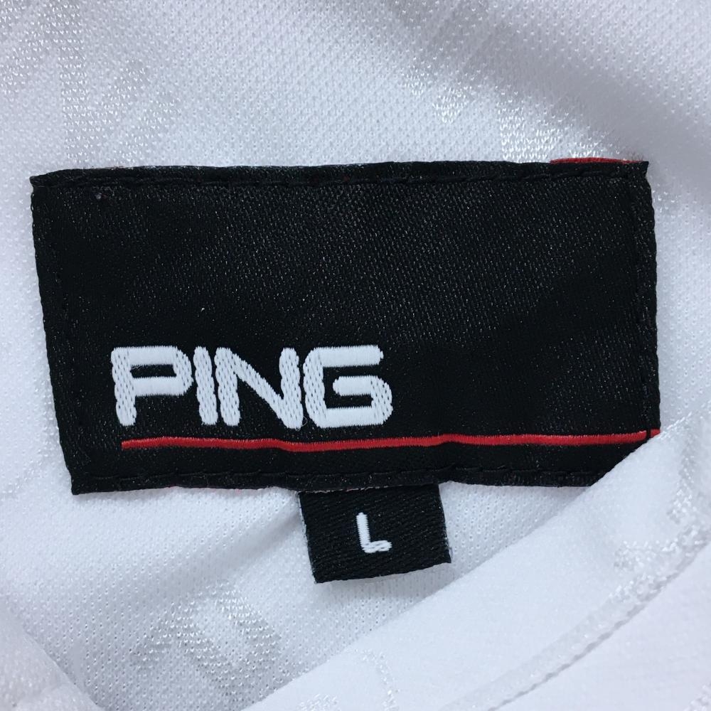 【美品】ピン 半袖ポロシャツ 白 ロゴ総柄 胸元刺しゅう メンズ L ゴルフウェア PING
