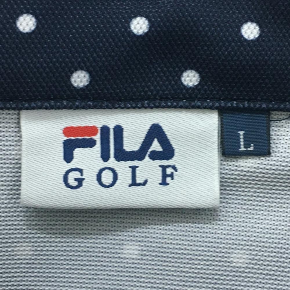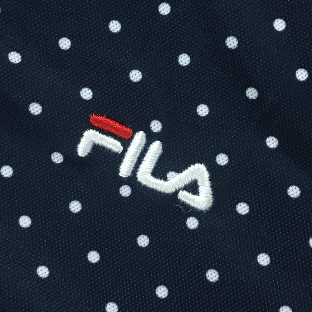 【超美品】フィラゴルフ 半袖ポロシャツ ネイビー×白 ドット柄 ロゴ刺しゅう メンズ L ゴルフウェア FILA GOLF