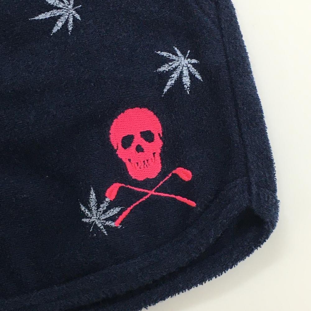 マークアンドロナ ショートパンツ ネイビー×白 リーフ柄 パイル地 レディース M ゴルフウェア MARK&LONA