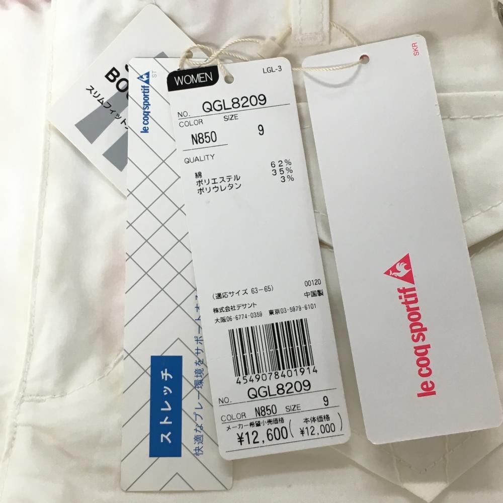 【新品】ルコックゴルフ パンツ 白×ピンク 複数ポケット チャーム付き レディース 9 ゴルフウェア le coq sportif