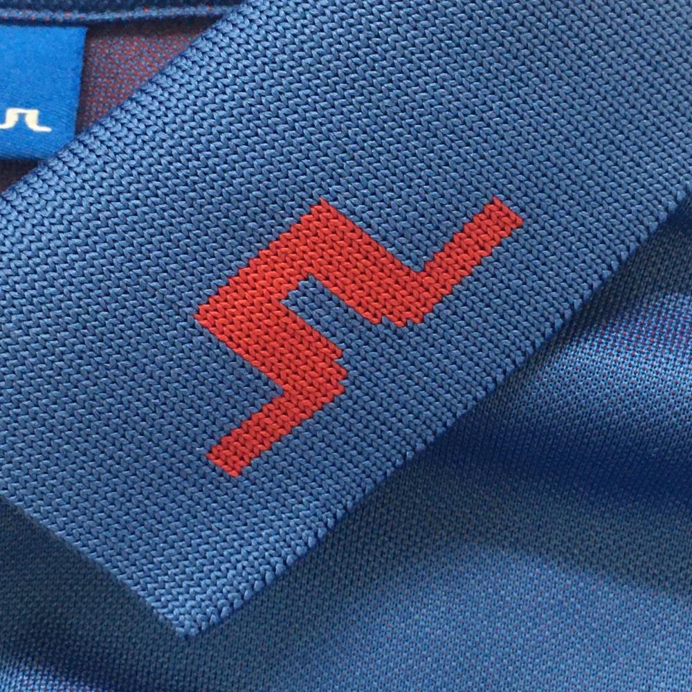 【超美品】ジェイリンドバーグ 半袖ポロシャツ ブルー×レッド 背面ビッグロゴ メンズ M ゴルフウェア J.LINDEBERG
