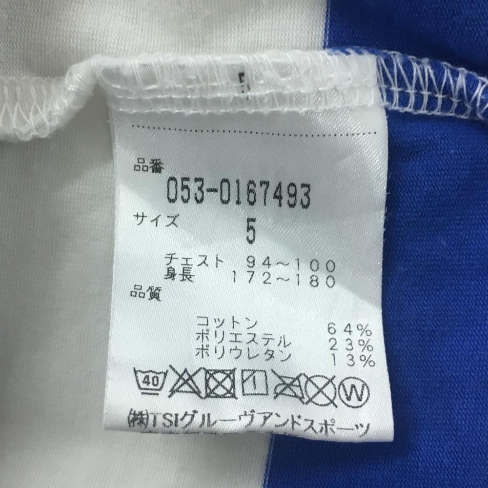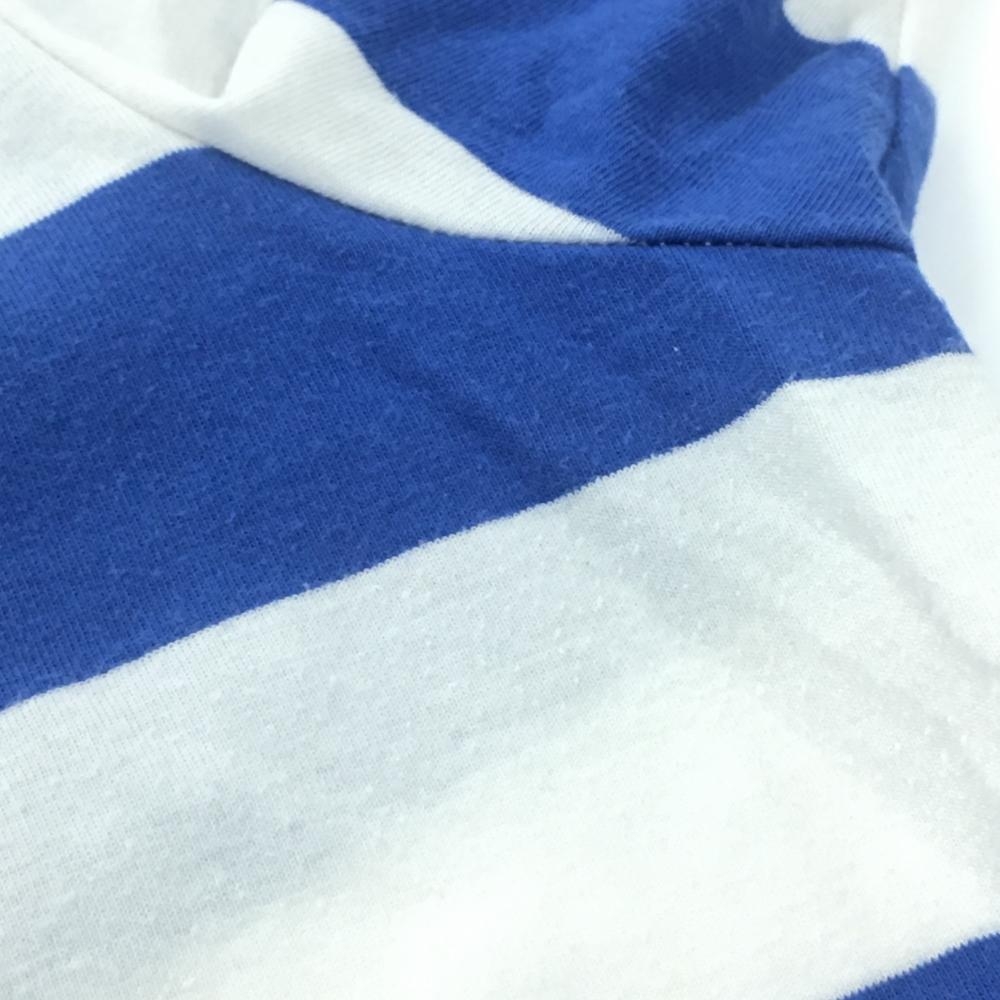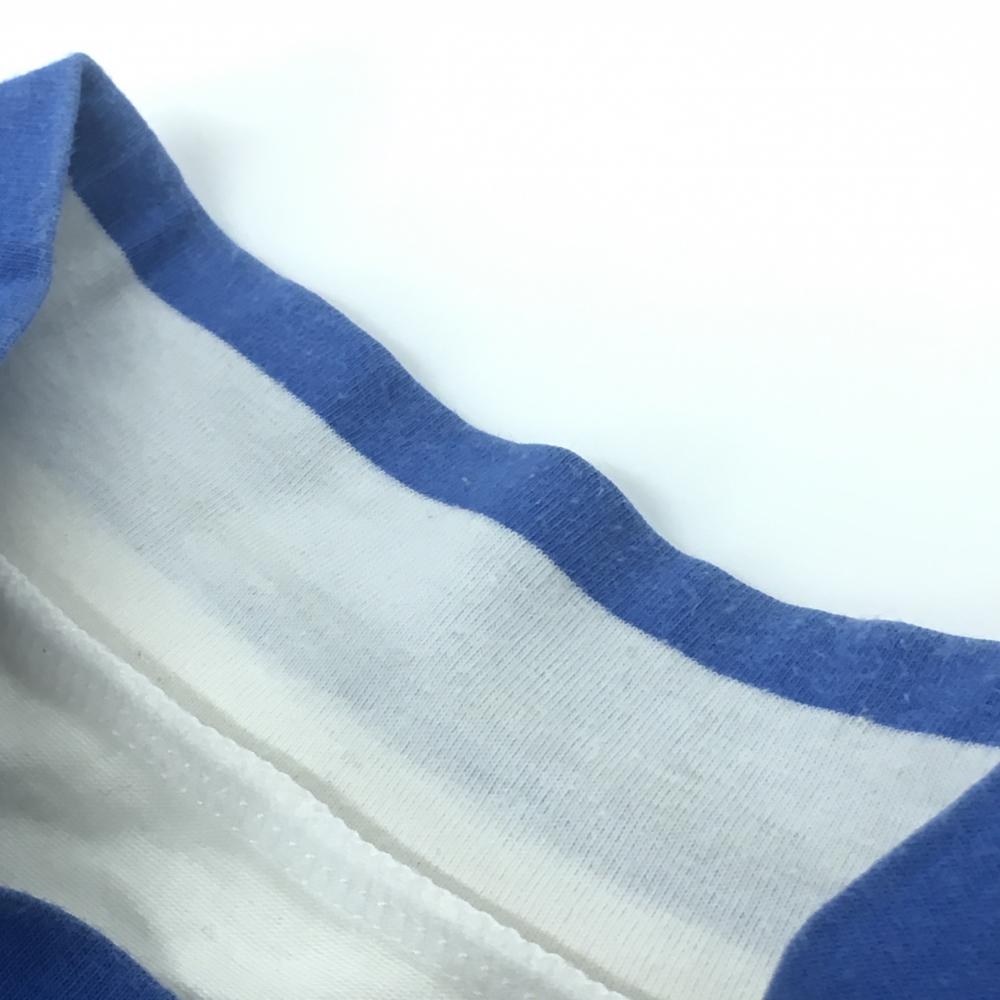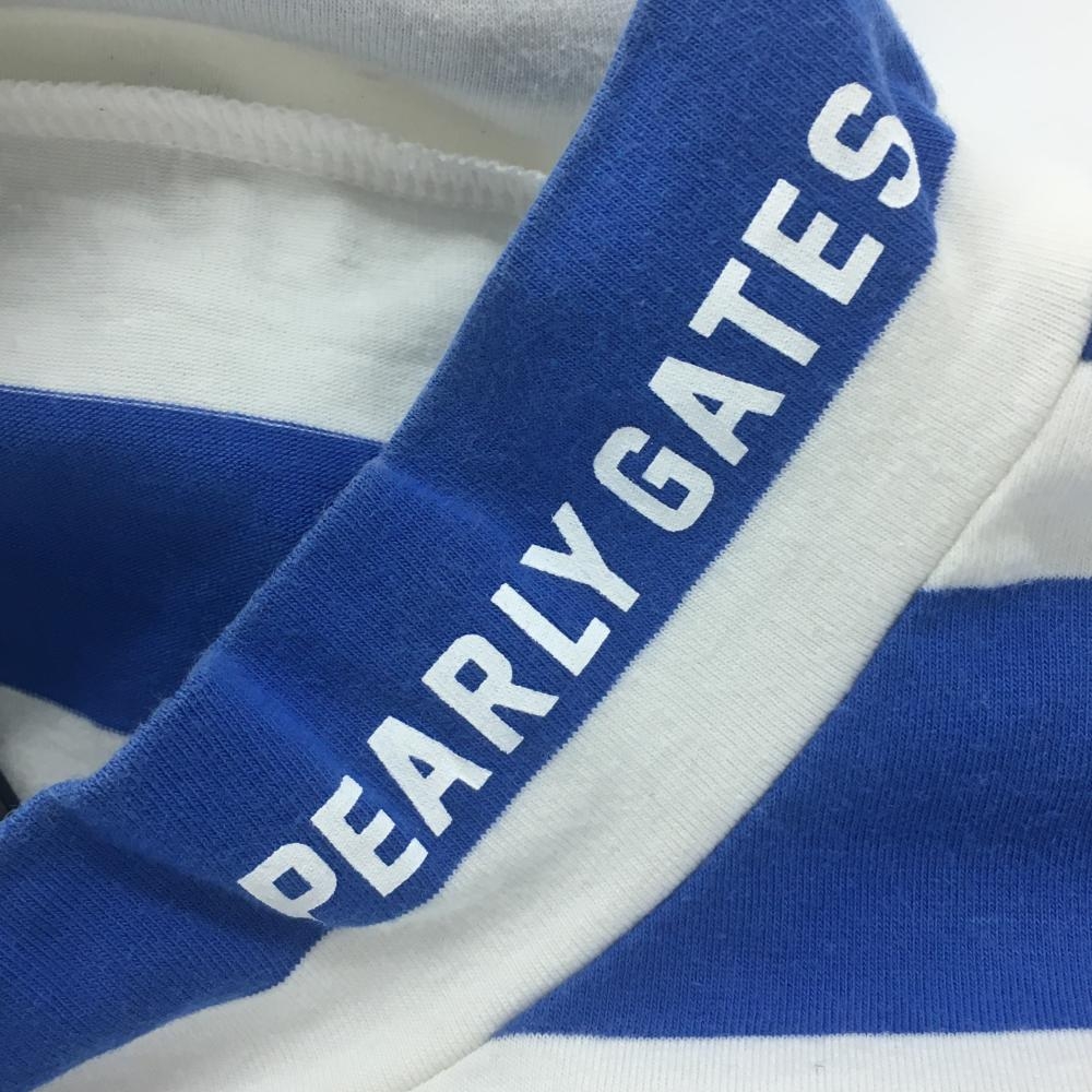 パーリーゲイツ 半袖ハイネックシャツ 白×ブルー ボーダー ストレッチ メンズ 5(L) ゴルフウェア PEARLY GATES