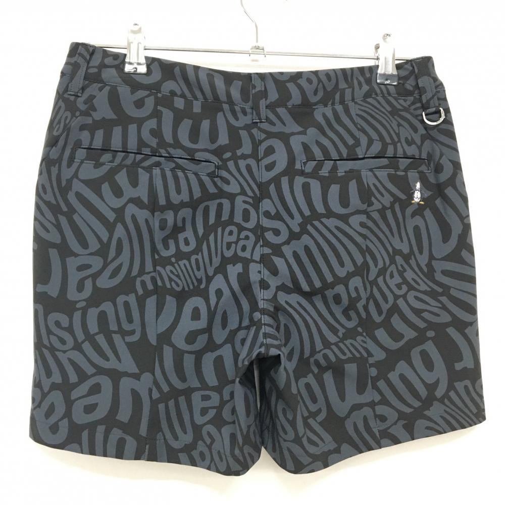 【超美品】マンシングウェア ハーフパンツ 黒×グレー 総柄 ペンギン刺しゅう ストレッチ レディース 9 ゴルフウェア Munsingwear