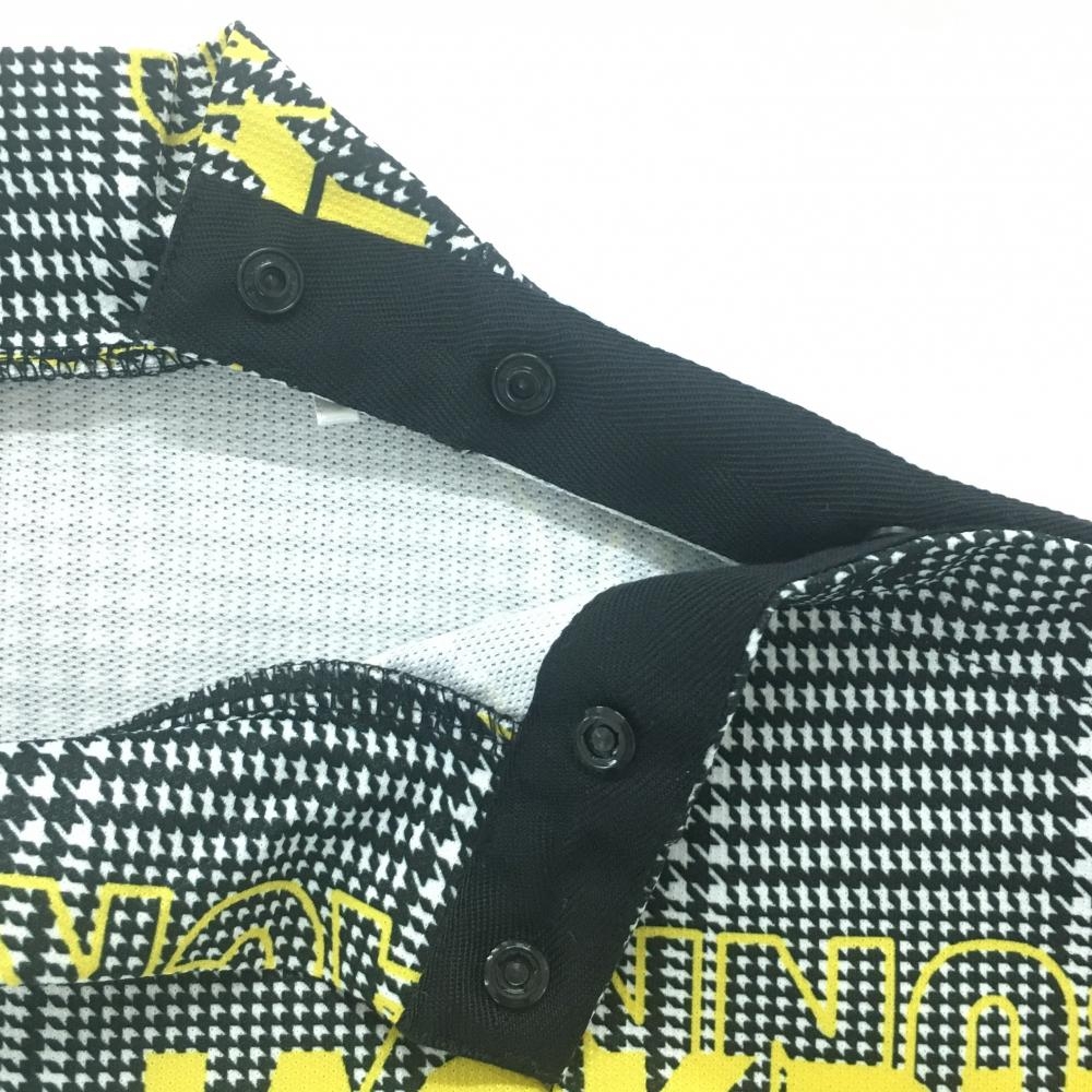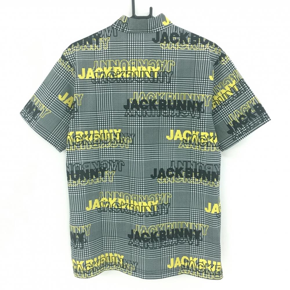 【超美品】ジャックバニー 半袖ハイネックシャツ 白×黒×イエロー グレンチェック ロゴ総柄 メンズ 6(XL) ゴルフウェア Jack Bunny