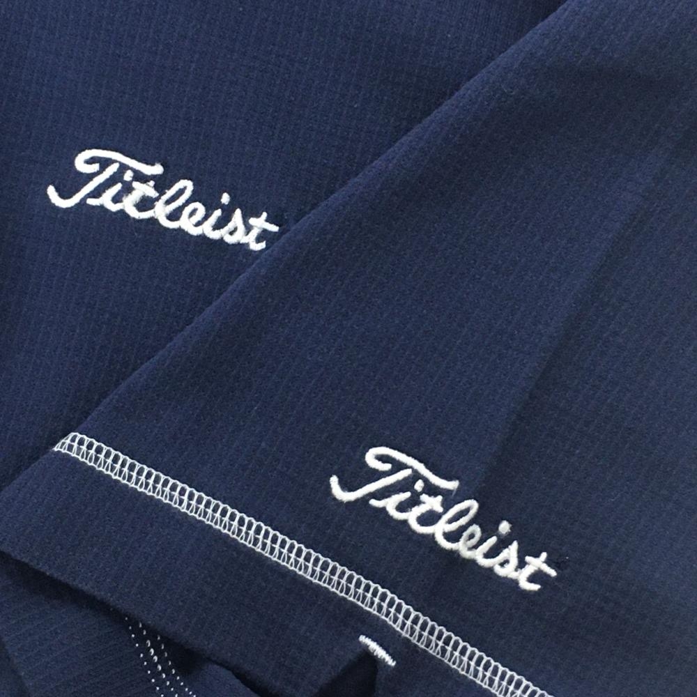 タイトリスト 半袖ポロシャツ ネイビー×白 格子織生地 ロゴ刺しゅう メンズ LL ゴルフウェア TITLEIST