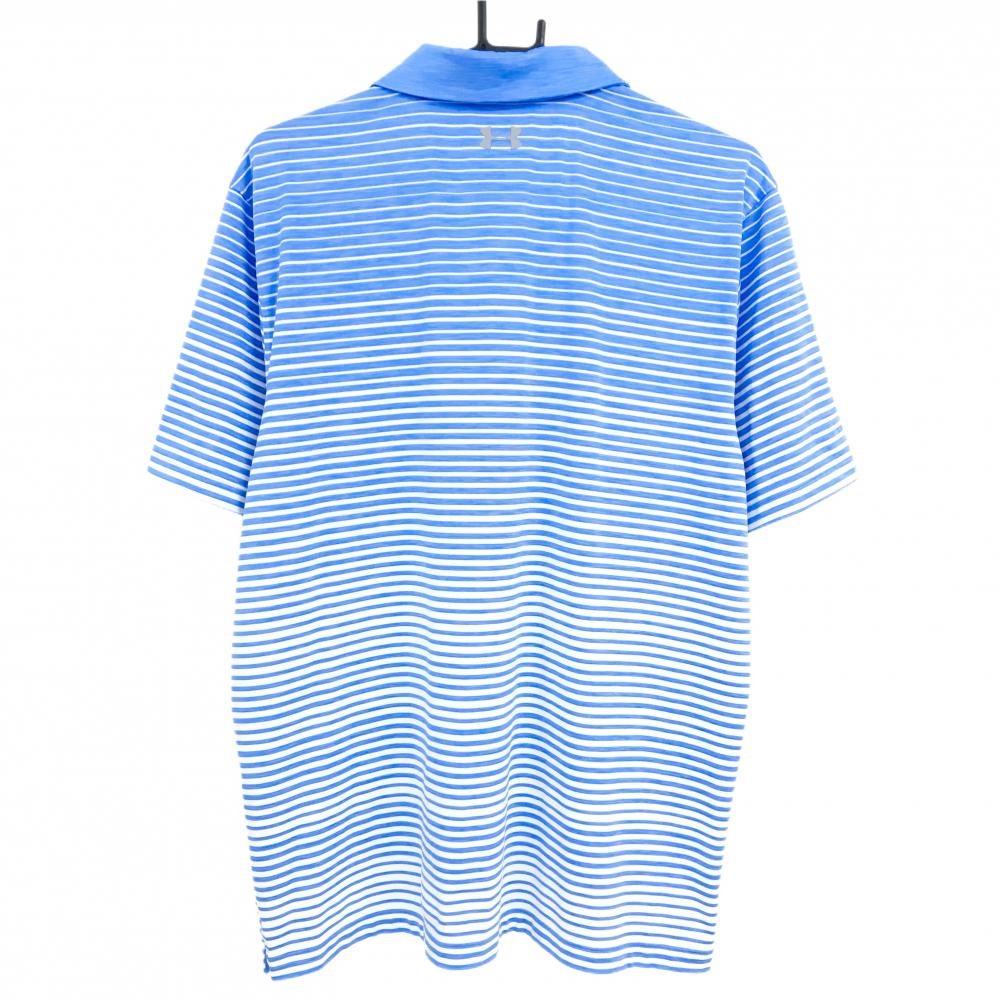 【超美品】アンダーアーマー 半袖ポロシャツ 杢ブルー×白 ボーダー メンズ 2XL/2TG/2XG ゴルフウェア 大きいサイズ UNDER ARMOUR