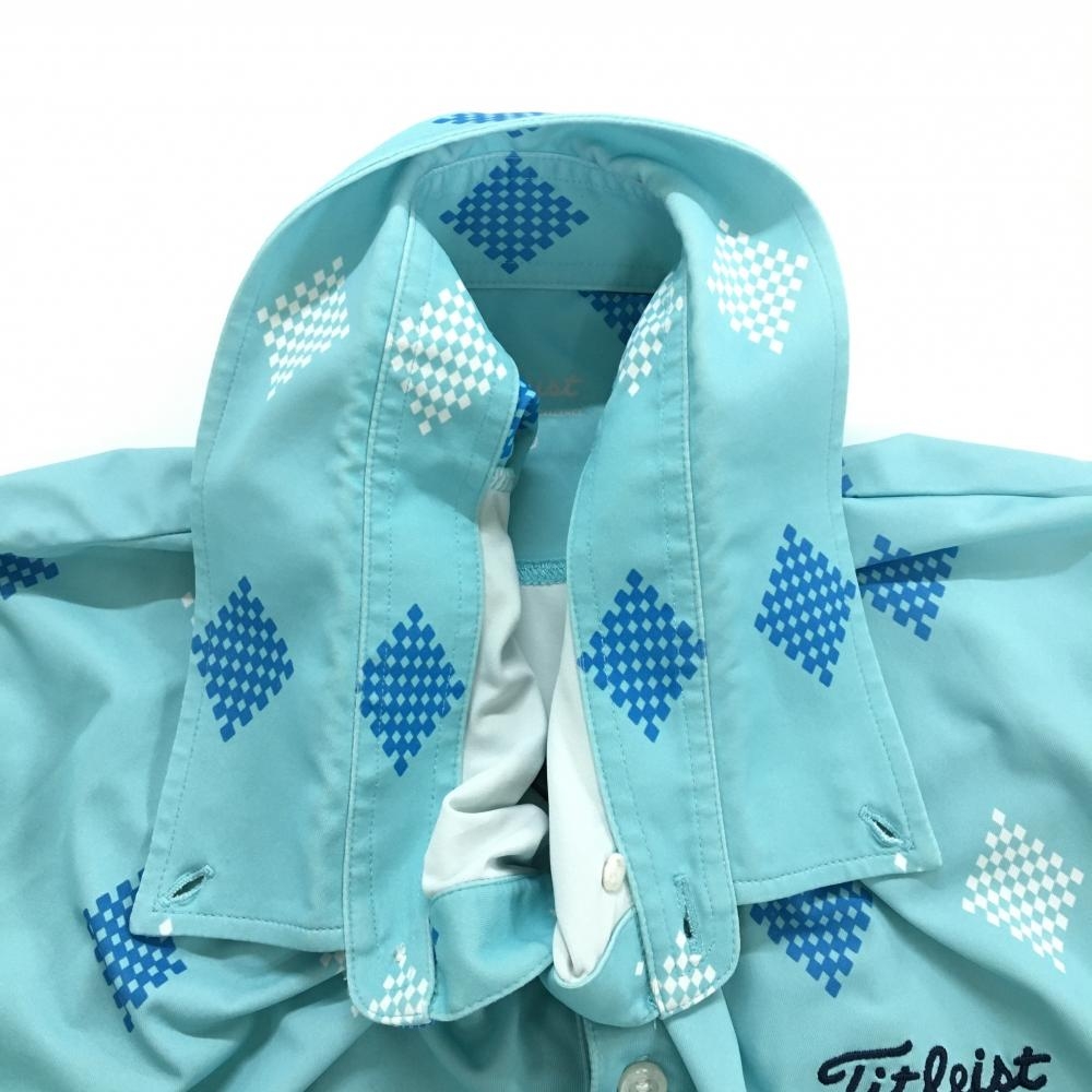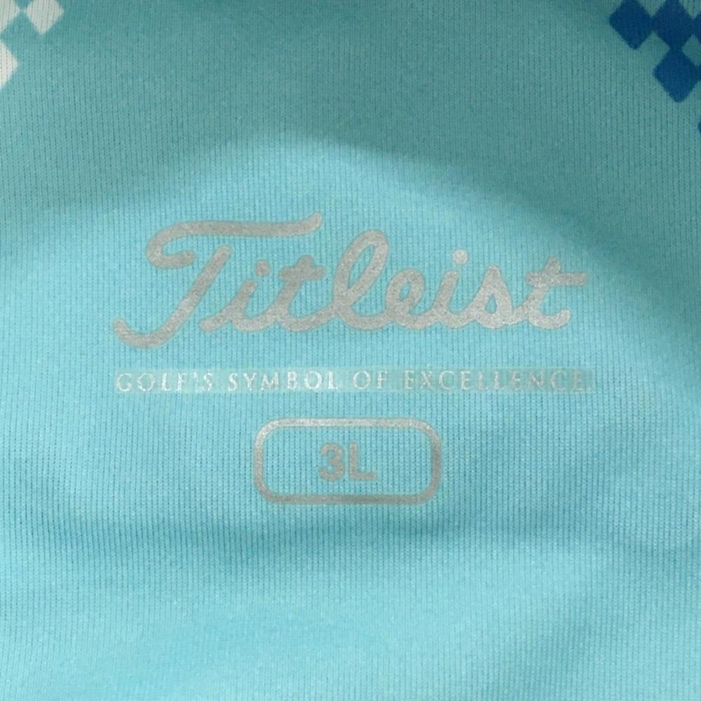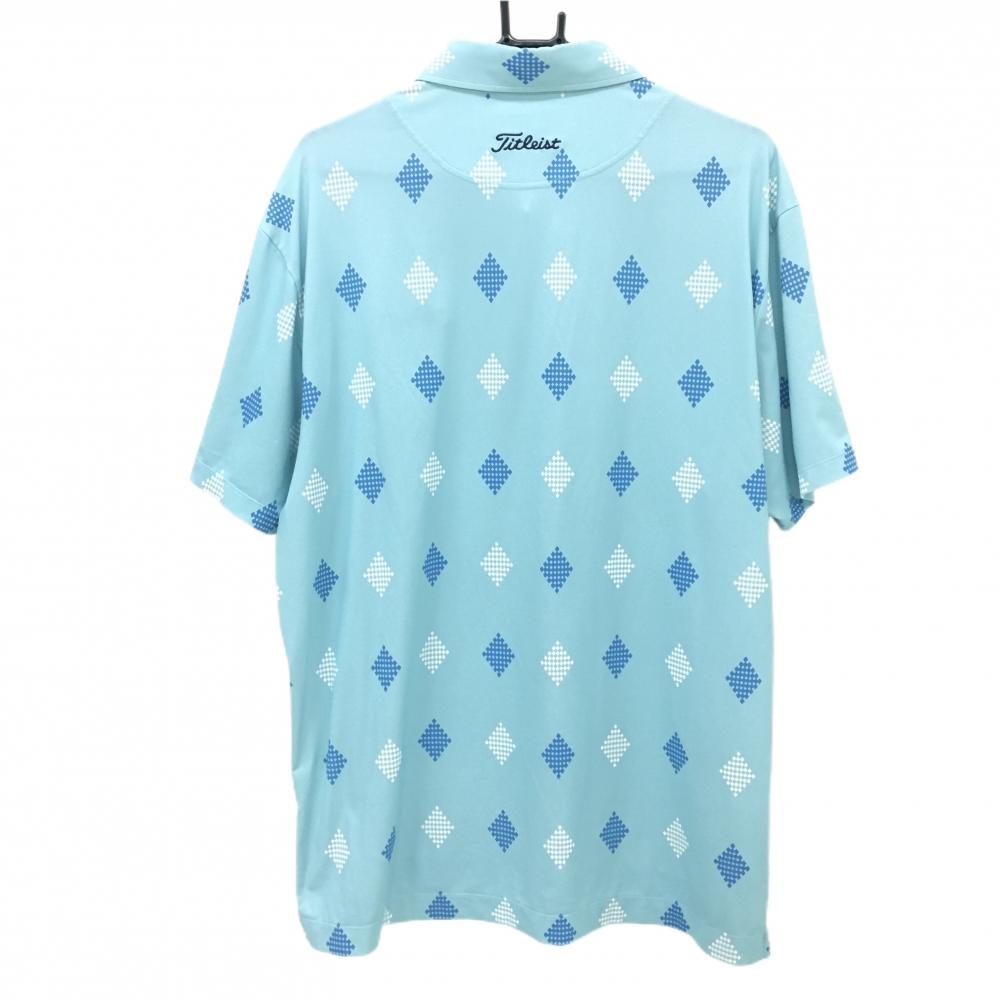 タイトリスト 半袖ポロシャツ ライトブルー×ブルー ダイヤ柄 ロゴ刺しゅう メンズ 3L ゴルフウェア 大きいサイズ TITLEIST