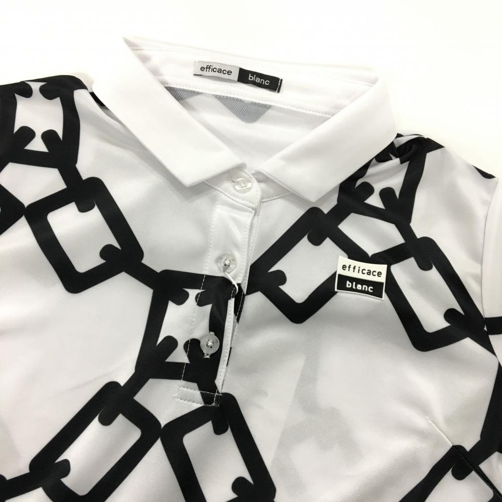 【新品】エフィカスブラン 半袖ポロワンピース 白×黒 総柄 インナーパンツ付 レディース M ゴルフウェア efficace