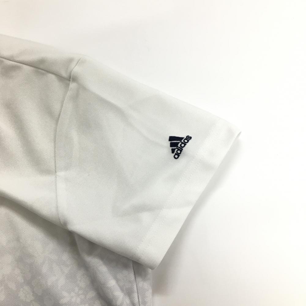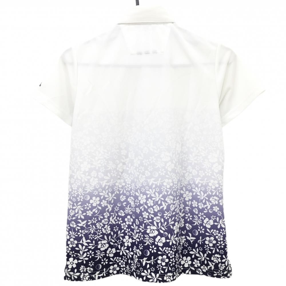 【超美品】アディダス 半袖ポロシャツ 白×パープルネイビー 花柄 グラデーション 袖ロゴボタンダウン レディース L/G ゴルフウェア adidas