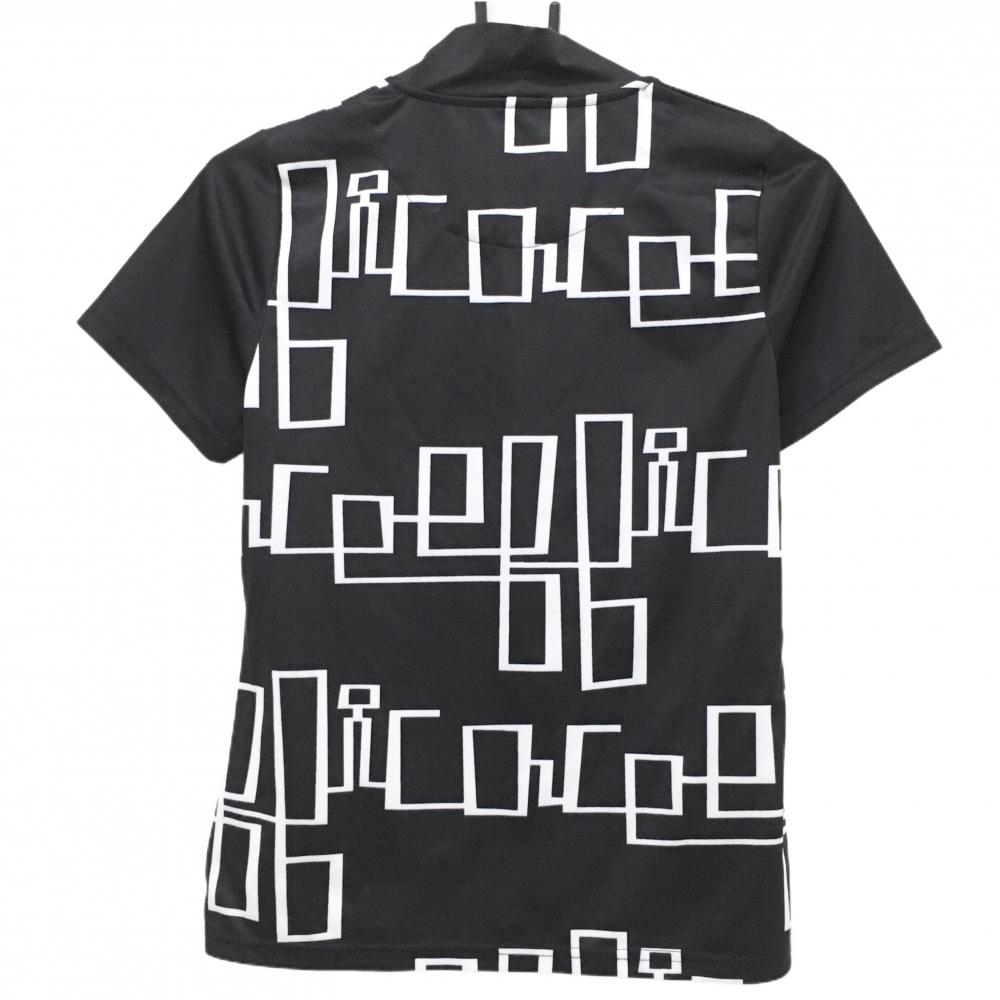 エフィカス 半袖ハイネックシャツ 黒×白 総柄 レディース M ゴルフウェア efficace
