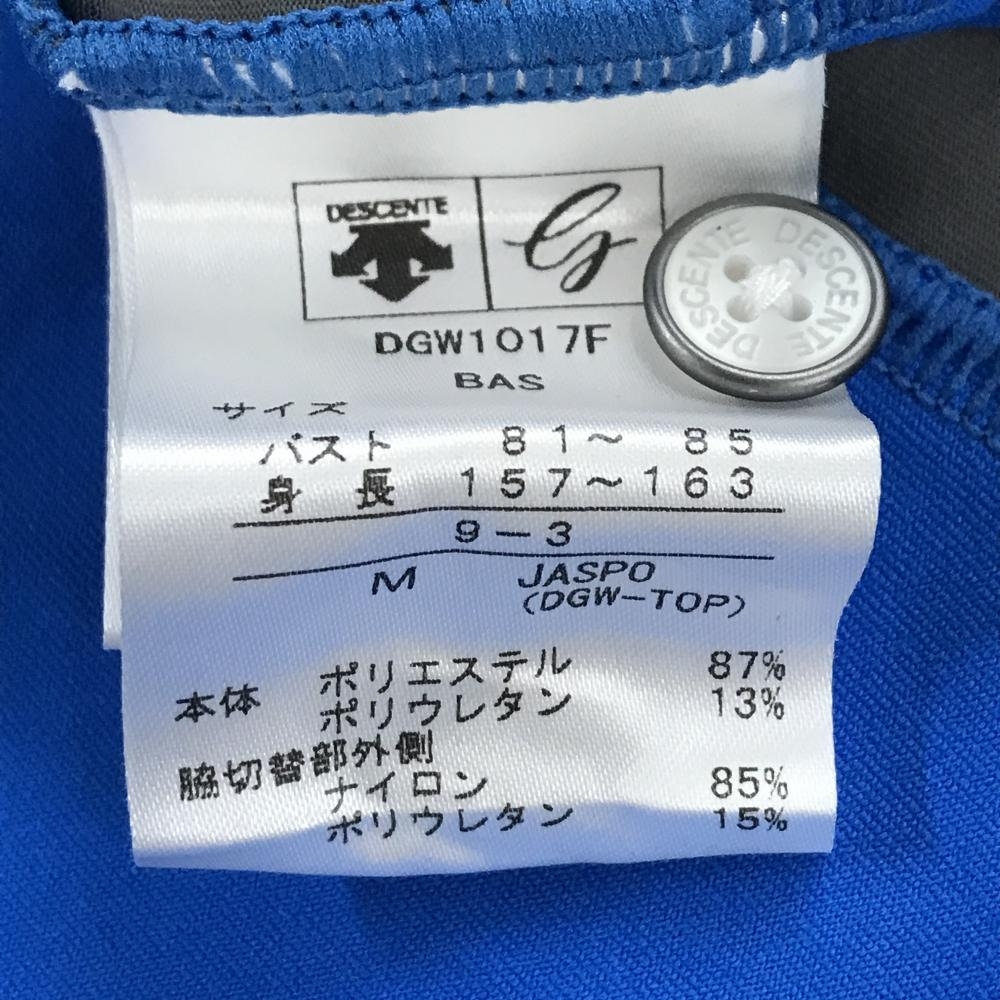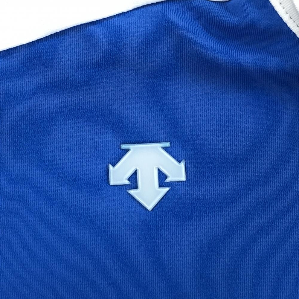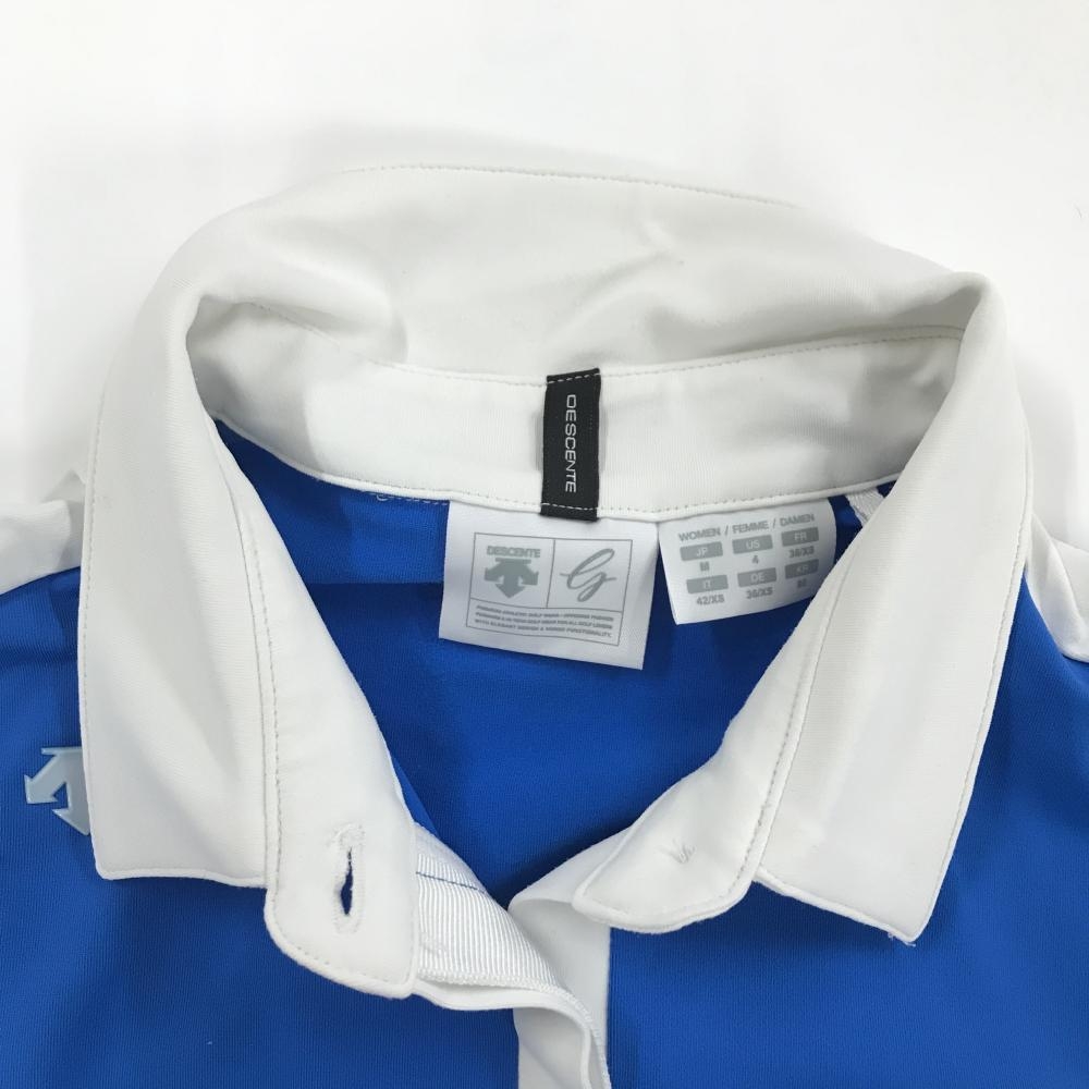 【美品】デサントゴルフ 長袖ポロシャツ ブルー×白 肩ロゴ ストレッチ サイド2ライン 中田英寿 レディース M ゴルフウェア DESCENTE
