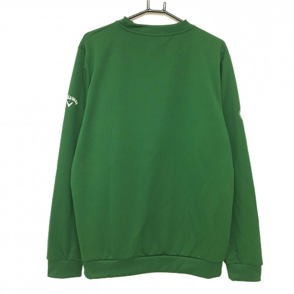 【超美品】キャロウェイ トレーナー グリーン×白 ロゴプリント 腹部ポケット メンズ 3L ゴルフウェア 2024年モデル 大きいサイズ Callaway