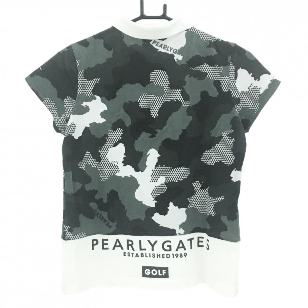 パーリーゲイツ 半袖ポロシャツ カーキ×黒×白 カモフラ 迷彩 レディース 0(S) ゴルフウェア PEARLY GATES