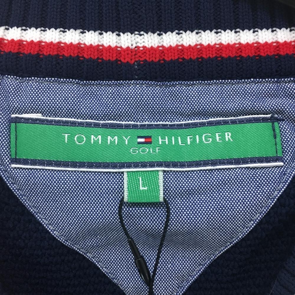 【新品】トミーヒルフィガーゴルフ ニットベスト ネイビー×レッド×白 胸ロゴワッペン レディース L ゴルフウェア Tommy Hilfiger Golf