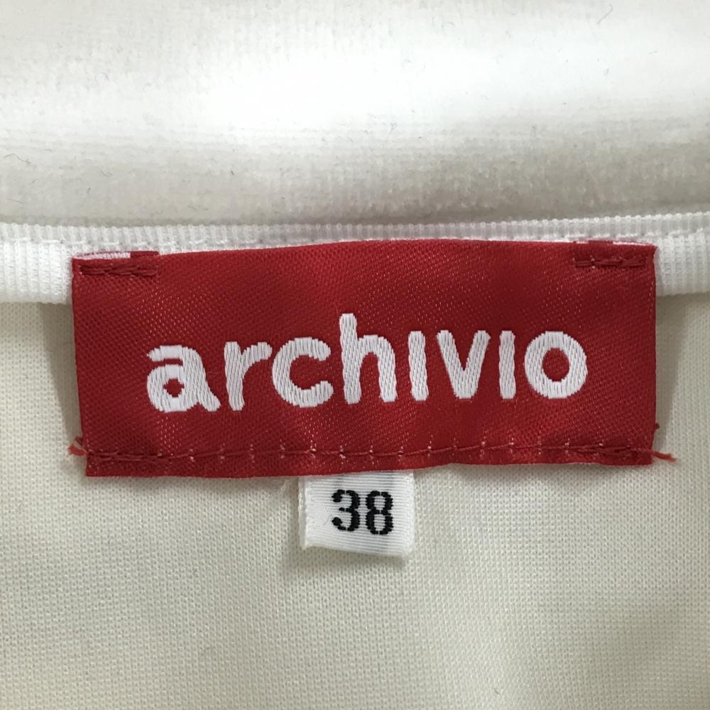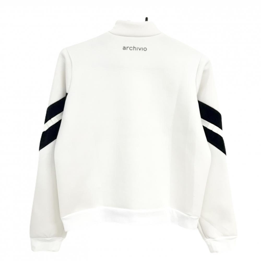 【美品】アルチビオ 長袖ハイネックシャツ 白×黒 ハーフジップ ダンボールニット 一部ベロア レディース 38 ゴルフウェア archivio