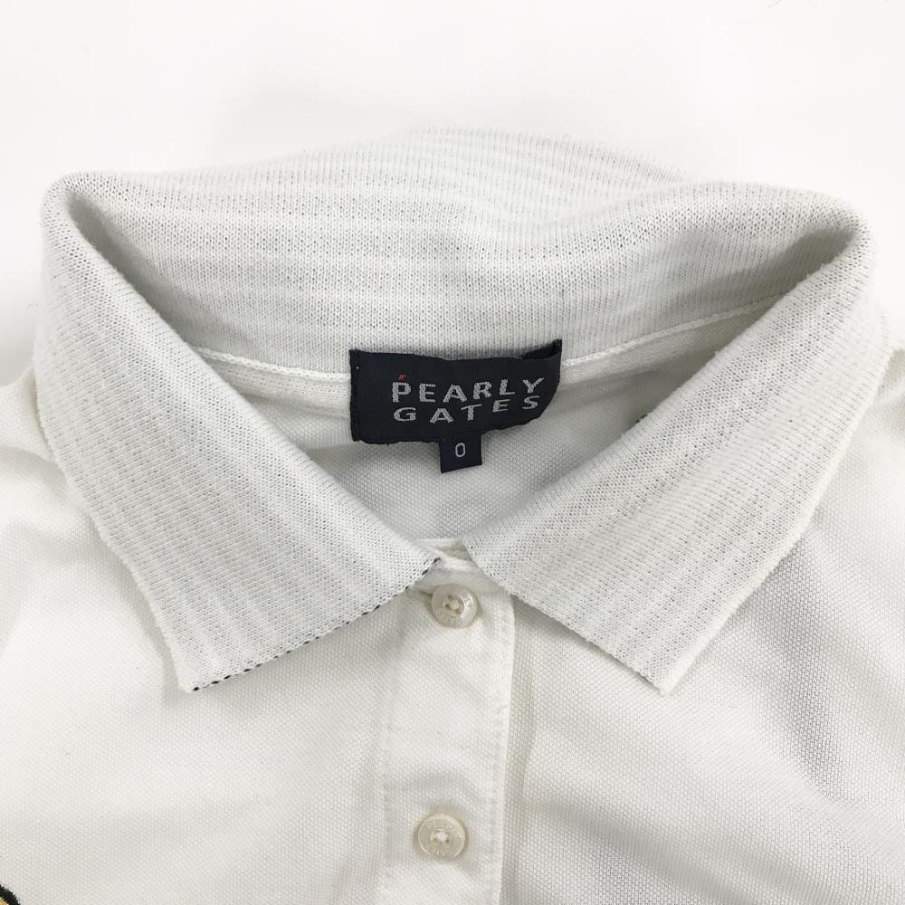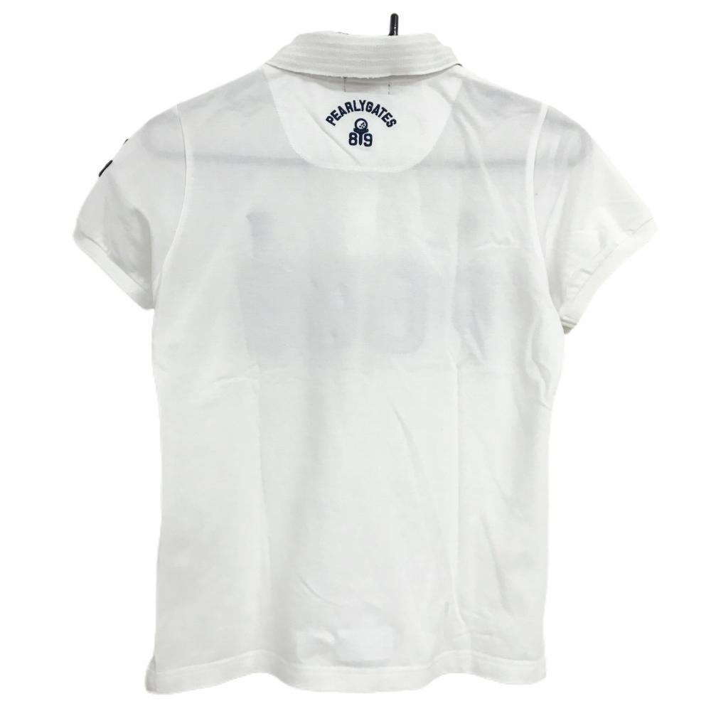 パーリーゲイツ 半袖ポロシャツ 白×ネイビー フェルトロゴ ニコちゃん スマイル レディース 0(S) ゴルフウェア PEARLY GATES
