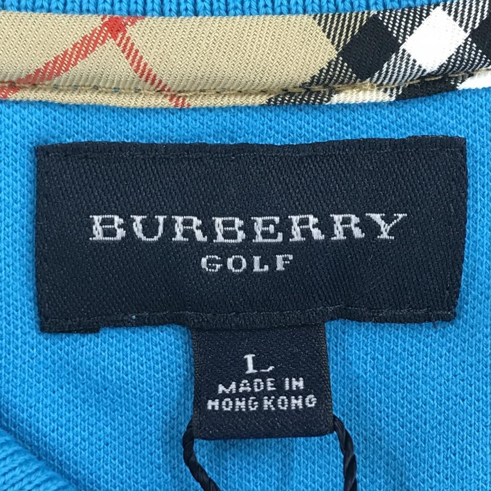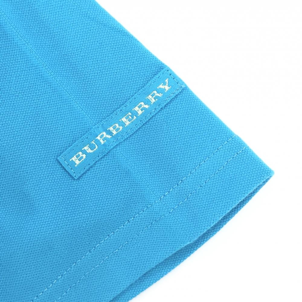 【新品】バーバリーゴルフ 半袖ポロシャツ ターコイズブルー 袖ロゴ レディース L ゴルフウェア BURBERRY GOLF