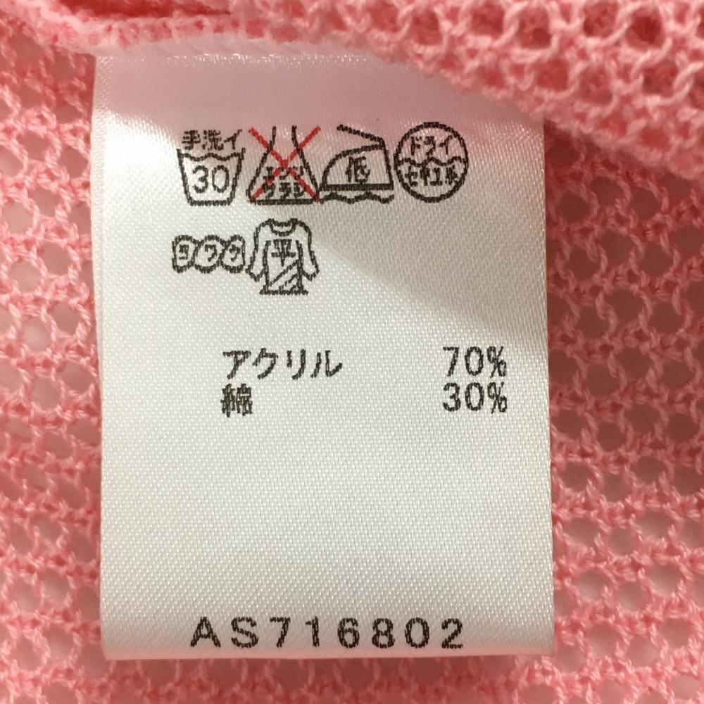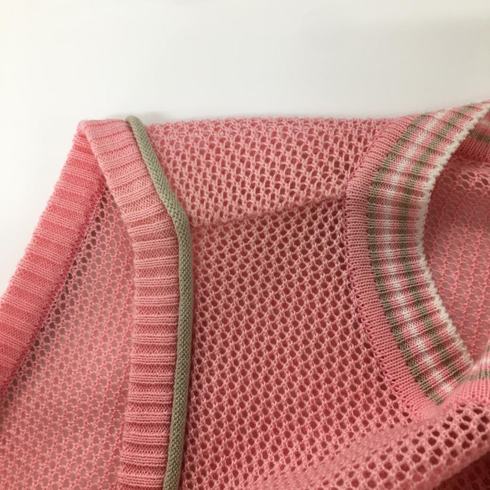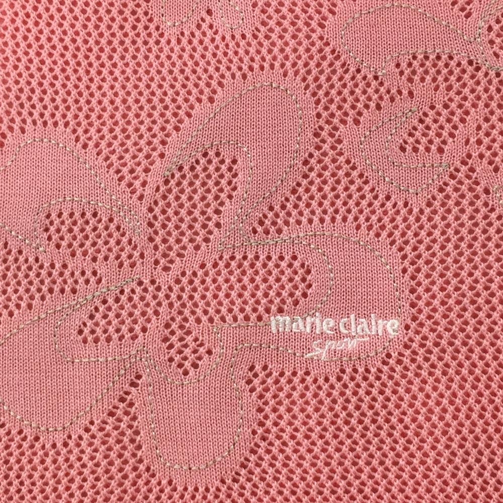 マリクレールスポール ニットメッシュベスト ピンク 左裾花柄 コットン混 紙タグ付 レディース M ゴルフウェア marie claire