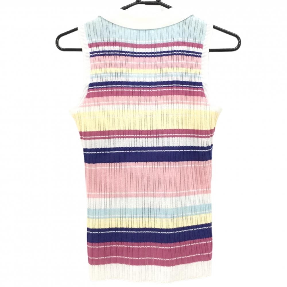 【新品】マリクレールスポール ニットスキッパーベスト 白×マルチカラー リブ編み 吸汗速乾 レディース M ゴルフウェア marie claire