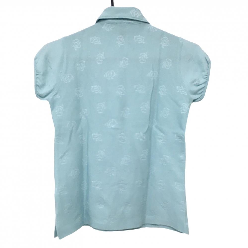 【超美品】ゾーイ 半袖ポロシャツ ライトブルー ロゴ地模様 胸元ワッペン レディース 38(M) ゴルフウェア ZOY