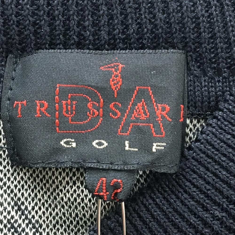 【未使用品】トラサルディゴルフ 半袖セーター 黒×ベージュ 総柄 コットン100% ニット レディース 42 ゴルフウェア