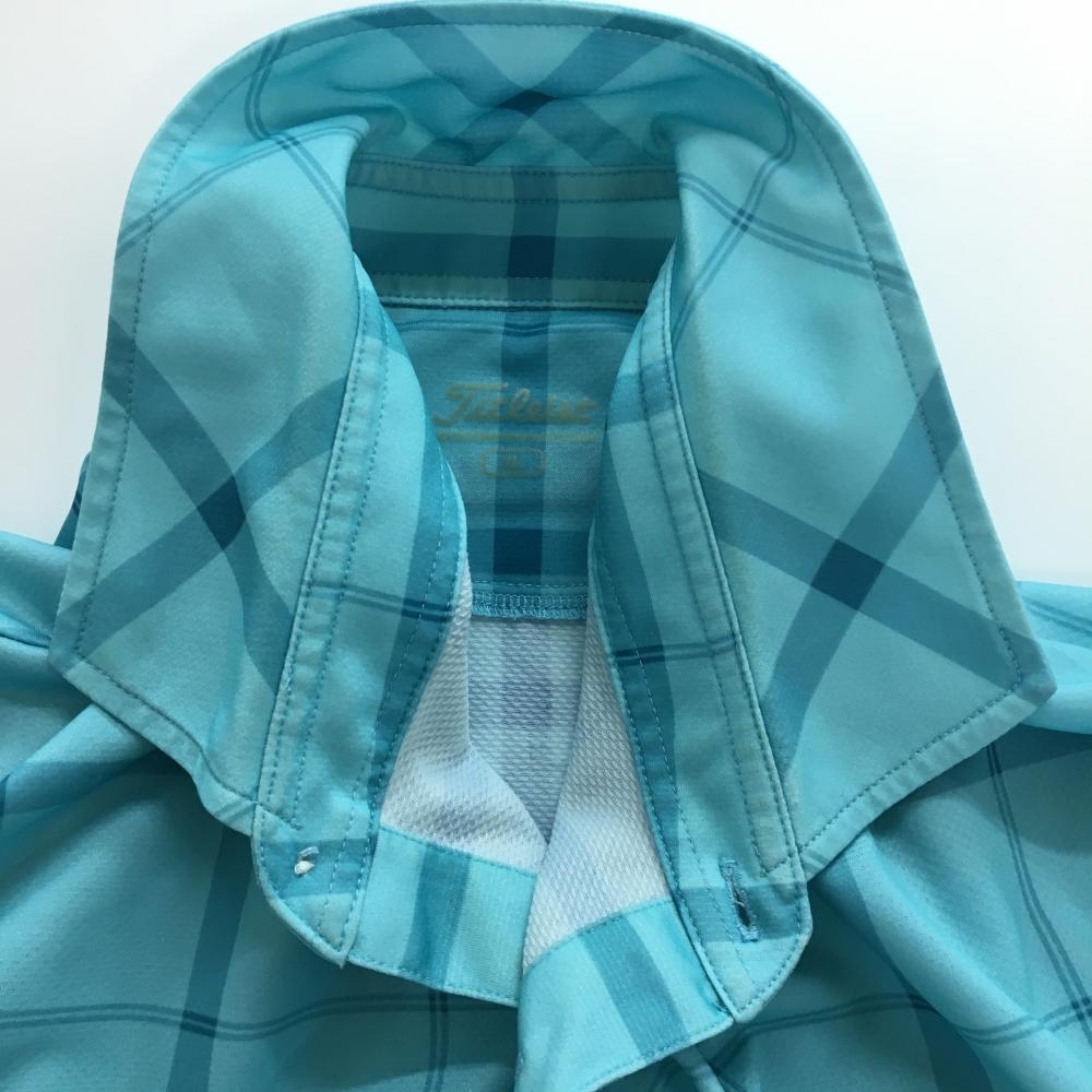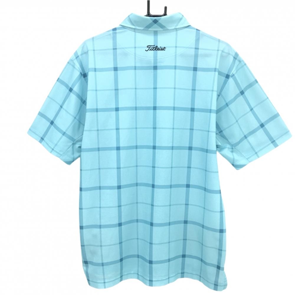 タイトリスト 半袖ポロシャツ ライトブルー×ブルー チェック柄 メンズ 3L ゴルフウェア 大きいサイズ TITLEIST