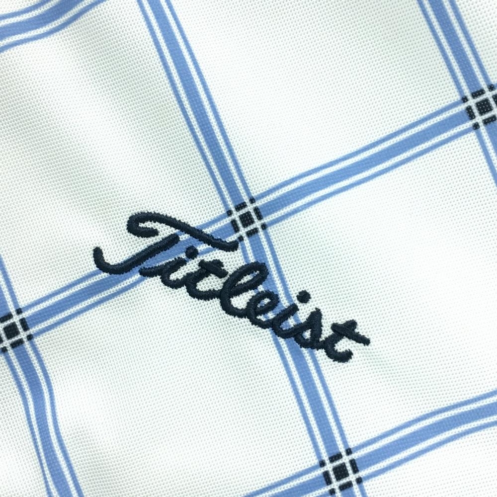 タイトリスト 半袖ポロシャツ 白×ブルー 斜め格子柄 ロゴ刺しゅう メンズ 3L ゴルフウェア 大きいサイズ TITLEIST