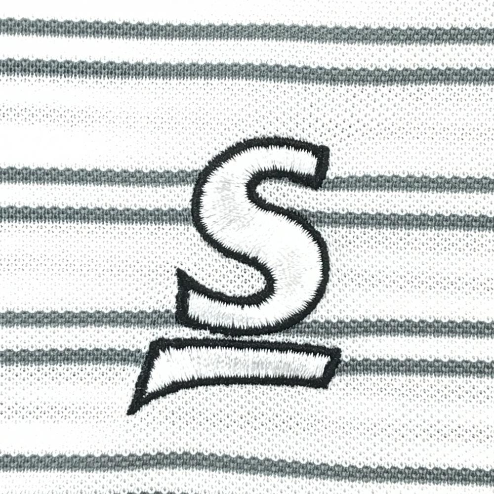 【超美品】スリクソン 半袖ポロシャツ 白×グレー ボーダー ボタンダウン メンズ L ゴルフウェア SRIXON