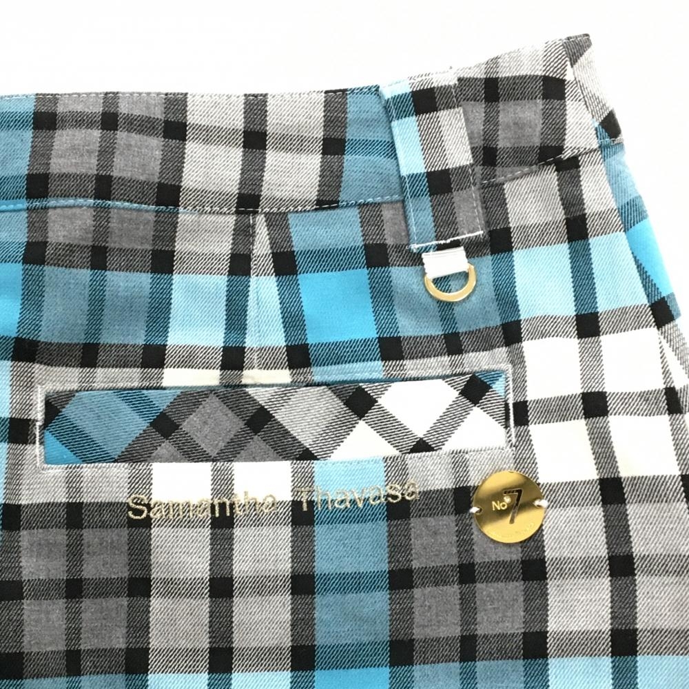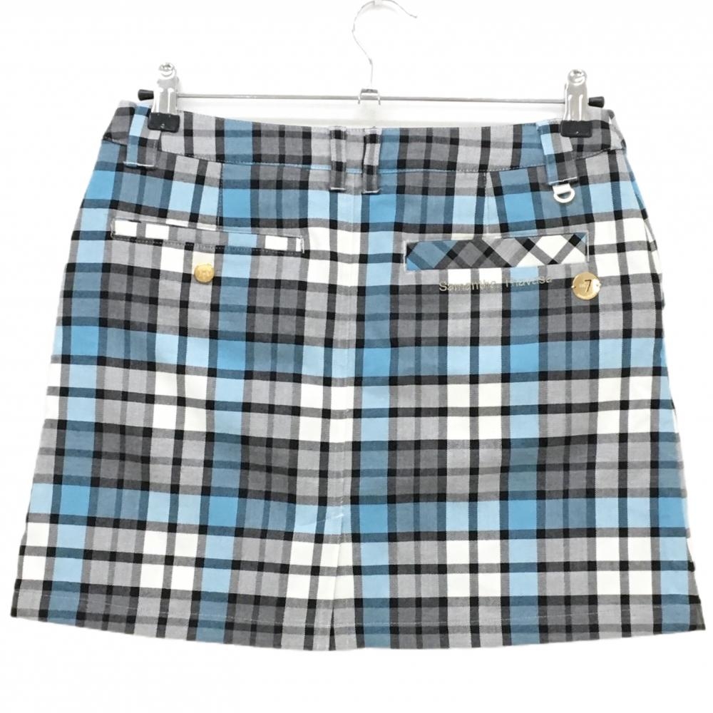 【美品】サマンサタバサNo.7 スカート 白×グレー系×ライトブルー チェック 裾ポケット レディース 40(L) ゴルフウェア Samantha Thavasa