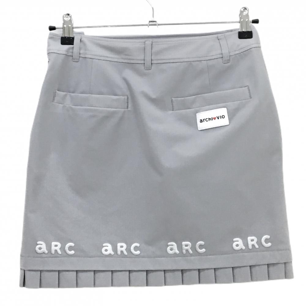 【超美品】アルチビオ スカート グレー系 裾ロゴ刺しゅう・プリーツ 裏地付き 地模様 レディース 36(S) ゴルフウェア archivio