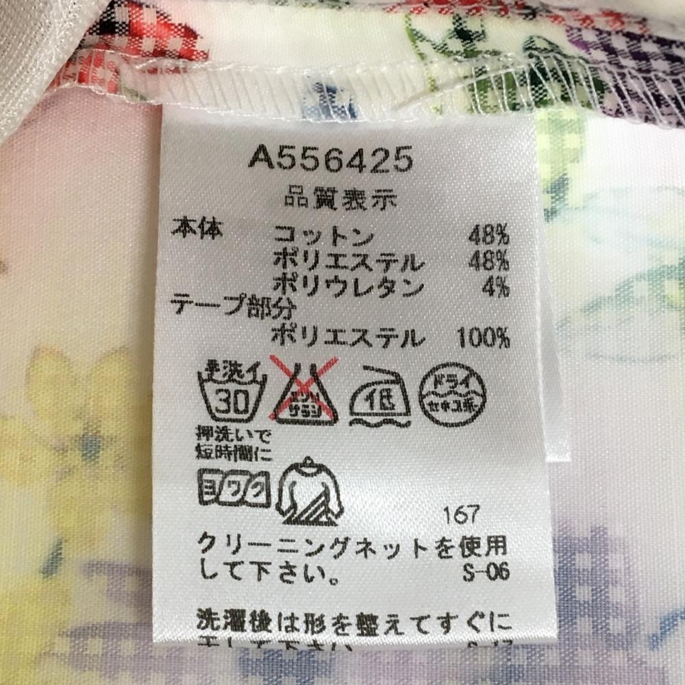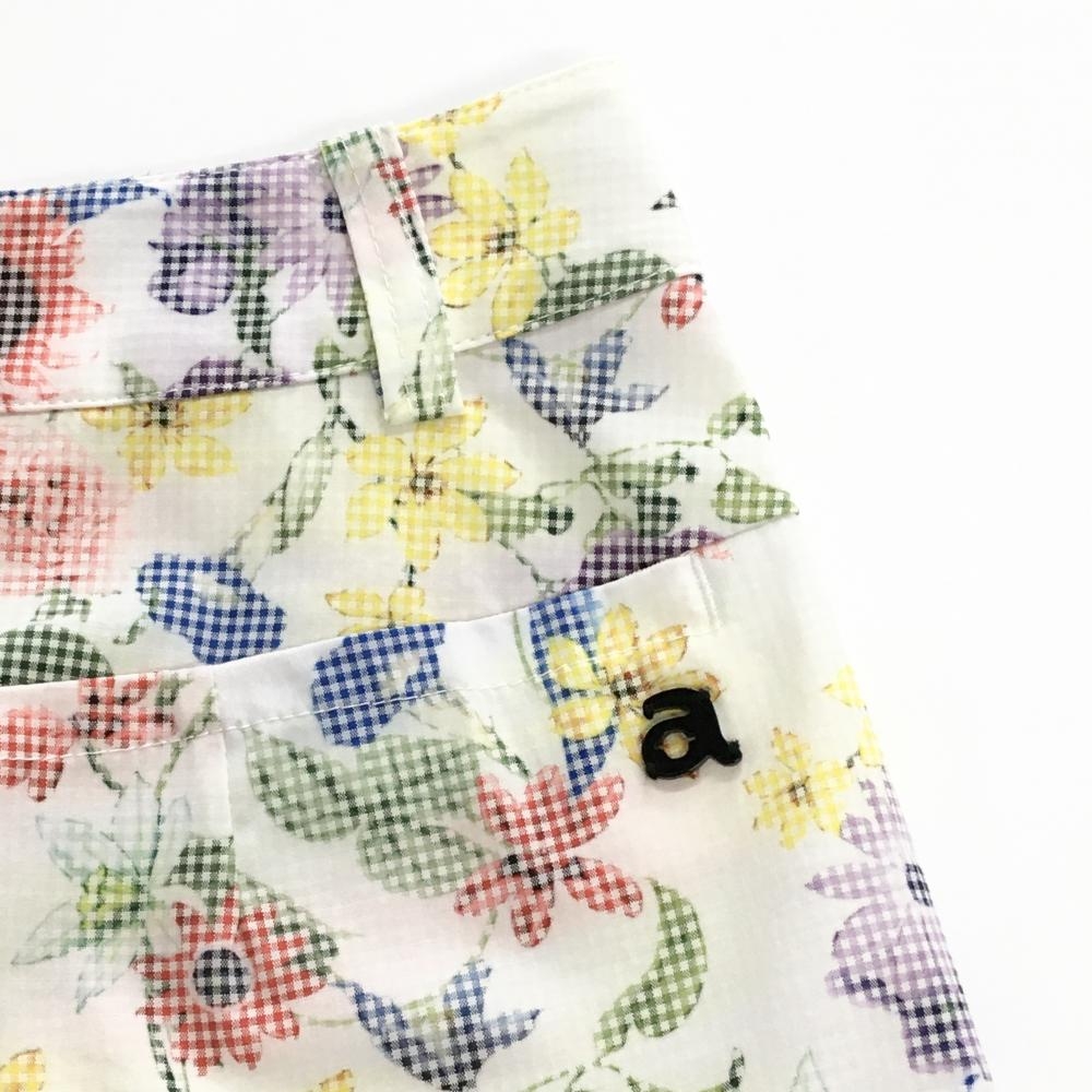 【超美品】アルチビオ スカート 白×マルチカラー 総柄 花 リーフ サイドライン ストレッチ レディース 38(M) ゴルフウェア archivio