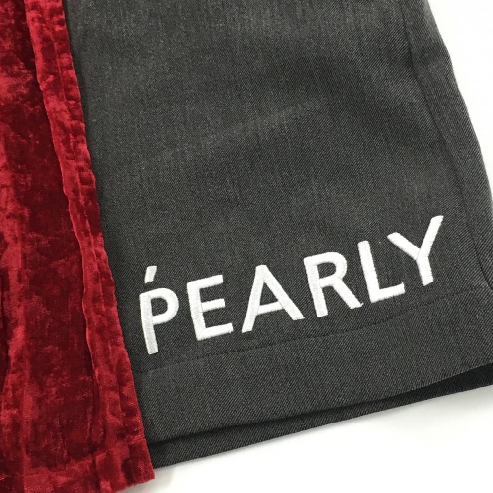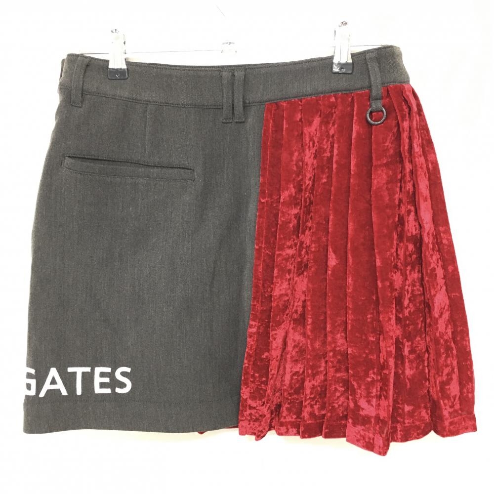 【美品】パーリーゲイツ スカート 杢グレー×レッド系 一部プリーツレイヤード調 ストレッチ レディース 1(M) ゴルフウェア PEARLY GATES