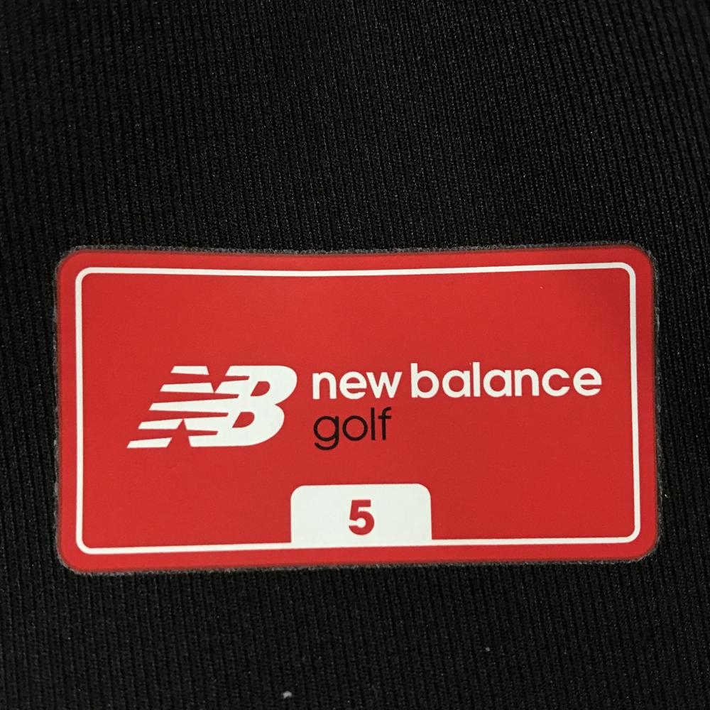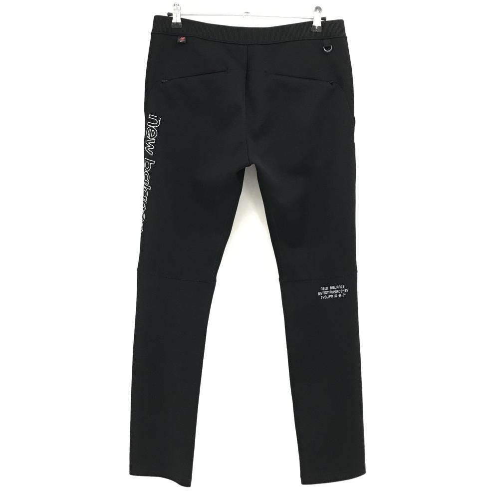 【美品】ニューバランスゴルフ パンツ 黒×白 ロゴプリント ウエストゴム 調節紐 メンズ 5(L) ゴルフウェア New Balance