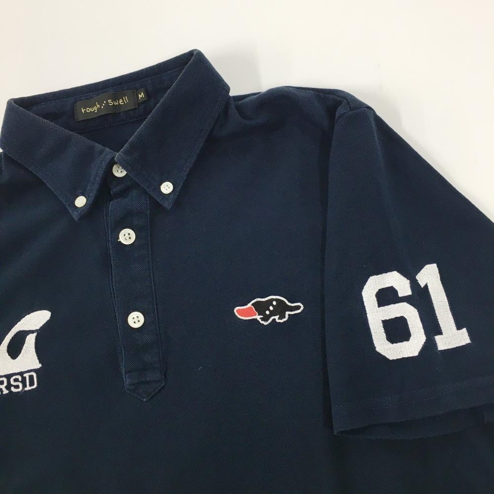 ラフアンドスウェル 半袖ポロシャツ ネイビー ロゴ ボタンダウン メンズ M ゴルフウェア rough&swell