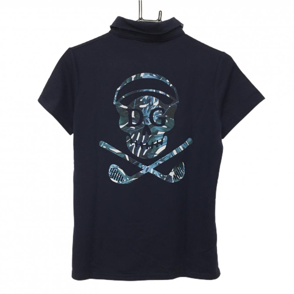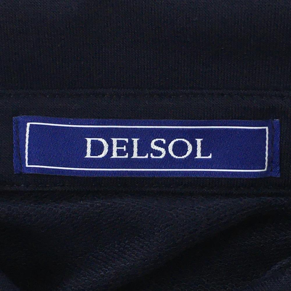 【超美品】デルソル 半袖ポロシャツ ネイビー バックロゴ 襟裏・前立て裏総柄 ロゴ刺しゅう レディース LL ゴルフウェア DELSOL