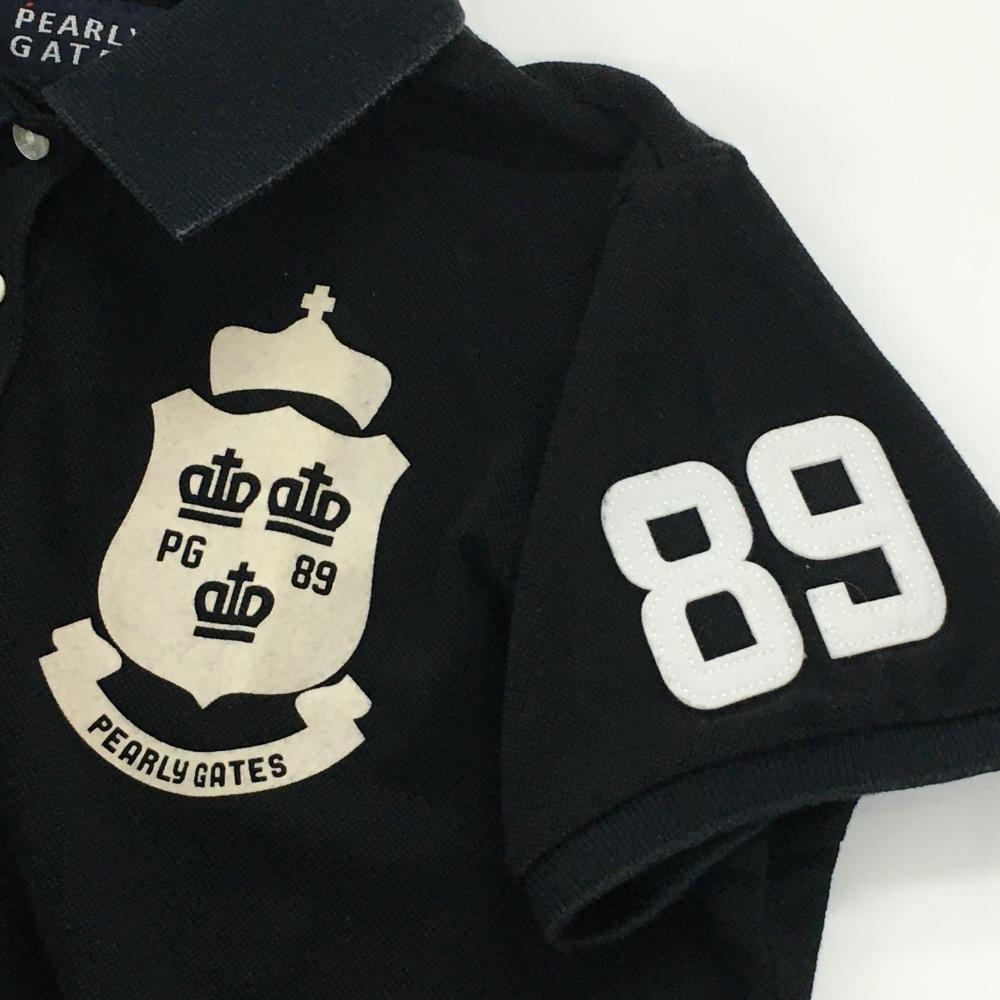 パーリーゲイツ 半袖ポロシャツ 黒 フロッキーロゴ レディース 0(S) ゴルフウェア PEARLY GATES