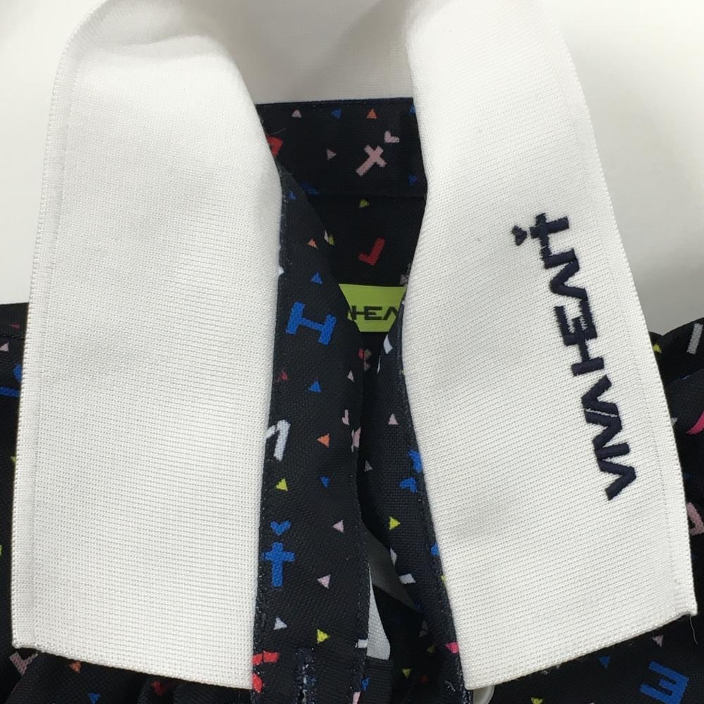 【美品】ビバハート 半袖ポロシャツ ネイビー×マルチカラー ロゴ総柄 レディース 42(L) ゴルフウェア VIVA HEART