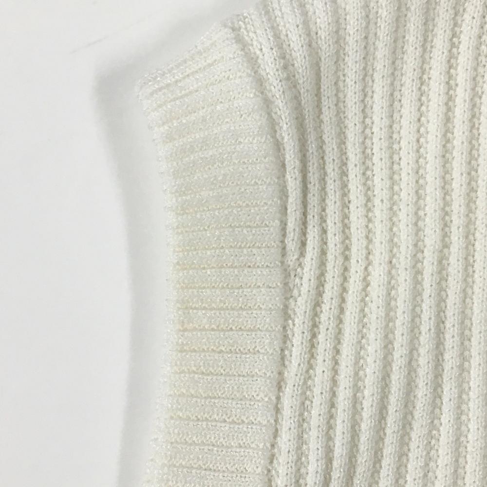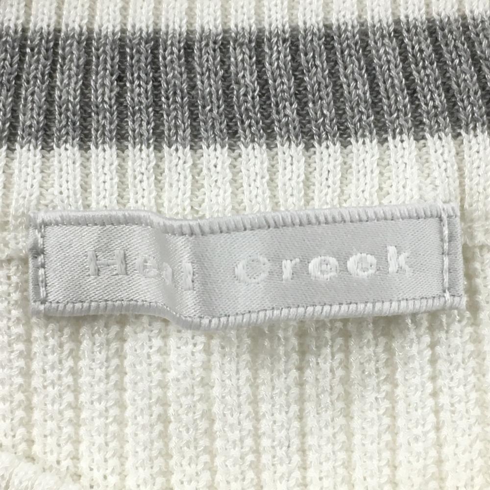 【美品】ヒールクリーク ニットベスト 白×ライトグレー ロゴ刺しゅう 裾ライン レディース 40(M) ゴルフウェア Heal Creek