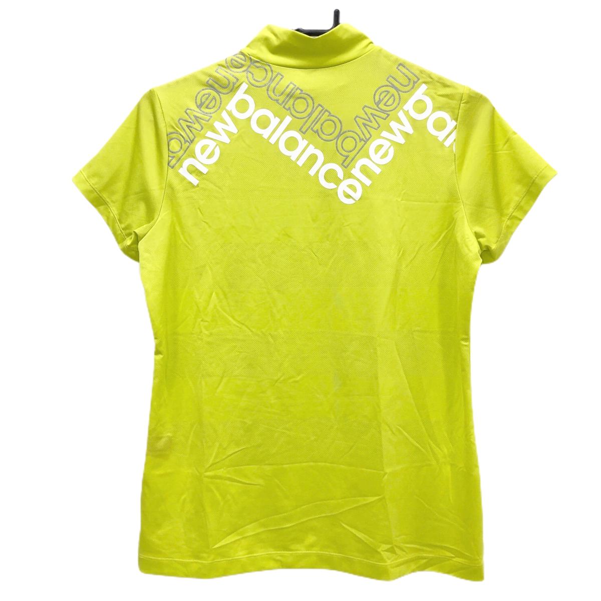【超美品】ニューバランスゴルフ 半袖ハイネックシャツ グリーンイエロー 胸上ロゴ レディース 2(L) ゴルフウェア New Balance