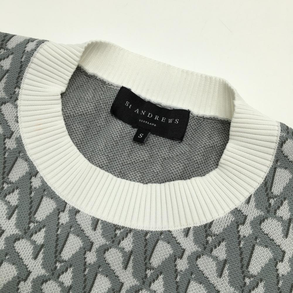 【美品】セントアンドリュース セーター グレー×白 ロゴ総柄 ニット レディース S ゴルフウェア St ANDREWS