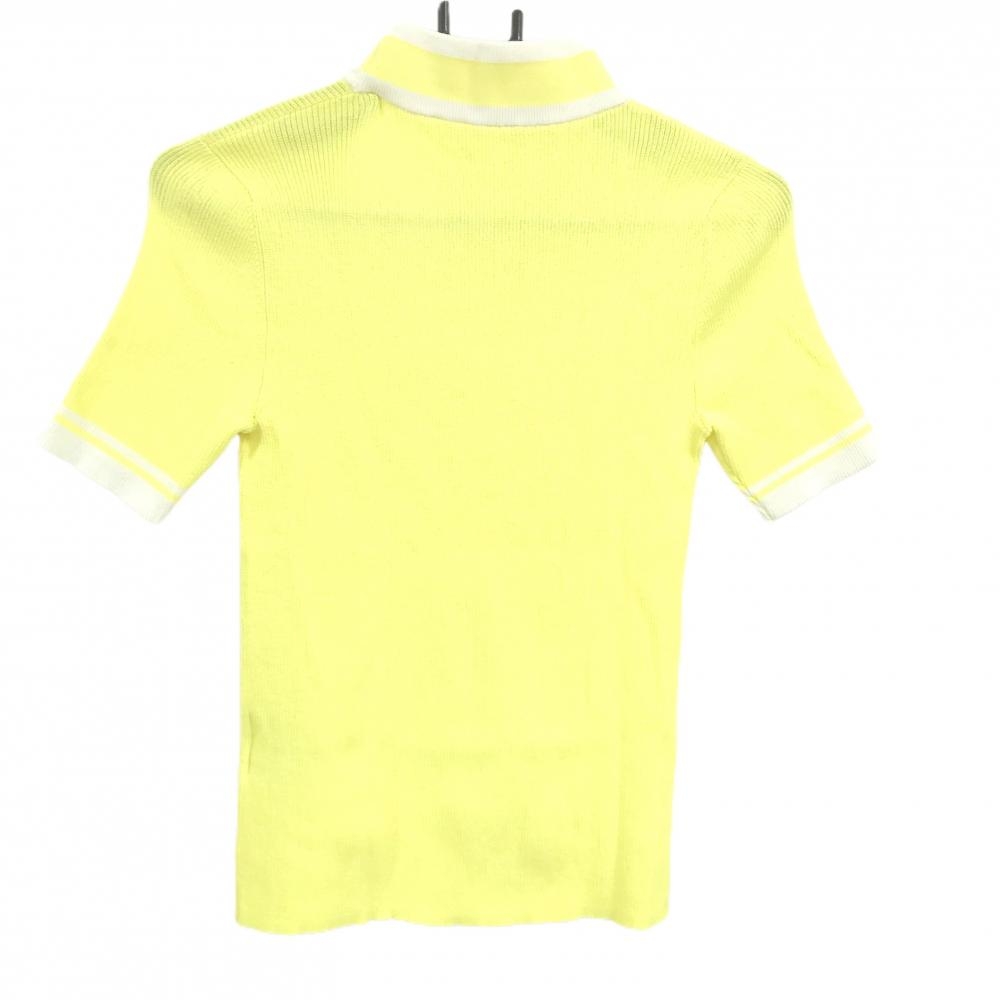 【超美品】ジュンアンドロペ 半袖ハイネックセーター イエロー×白 ネックロゴ レディース S ゴルフウェア JUN&ROPE