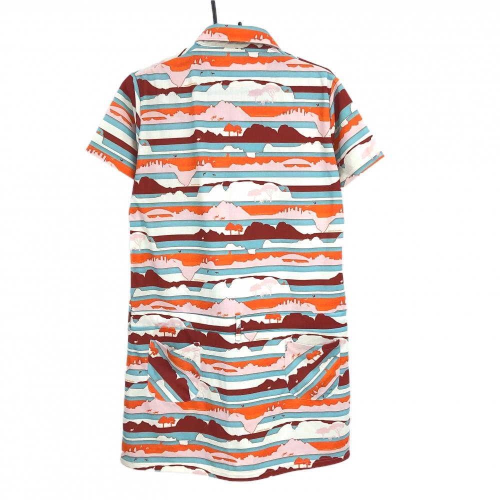 パラディーゾ 半袖ポロワンピース 白×オレンジ ボーダー調 ウエスト調節紐 レディース 3L ゴルフウェア 大きいサイズ Paradiso