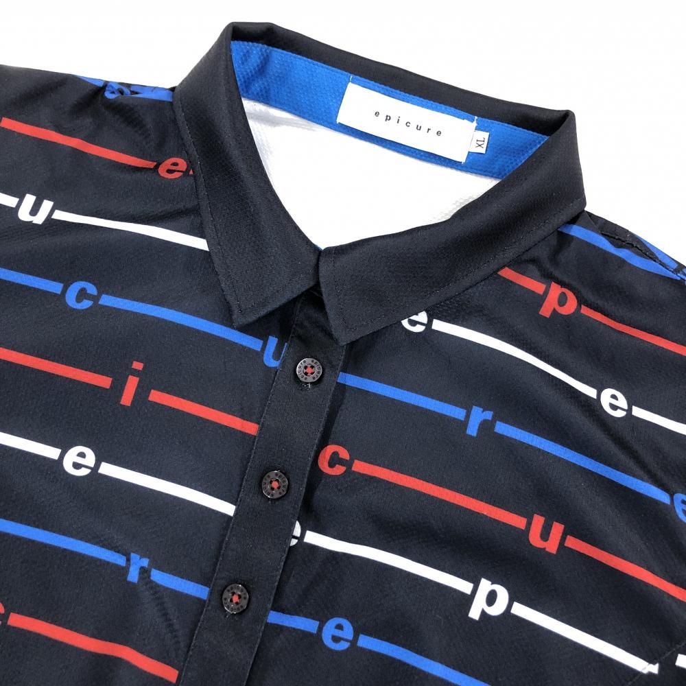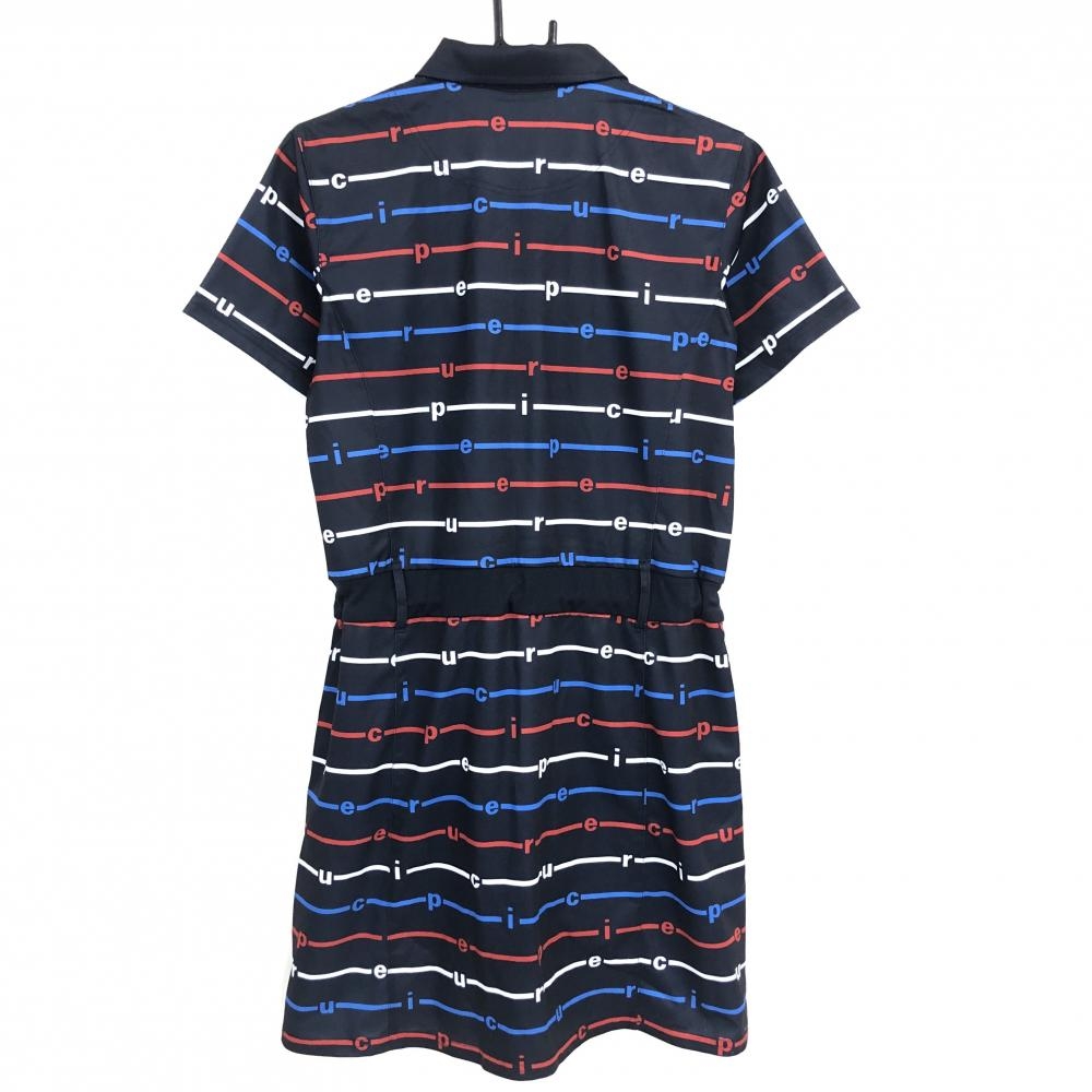 【超美品】エピキュール 半袖ポロワンピース ネイビー×レッド ボーダー風 ウエスト調整紐 レディース XL ゴルフウェア epicure