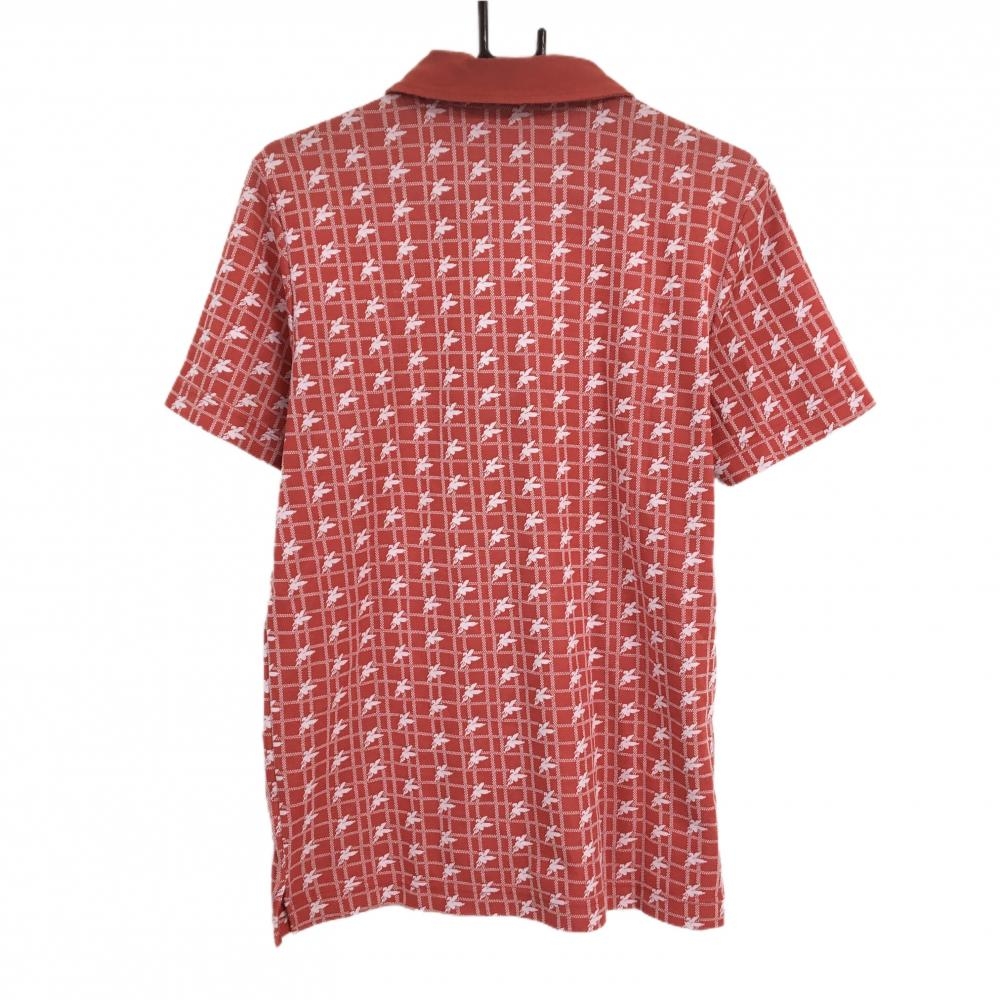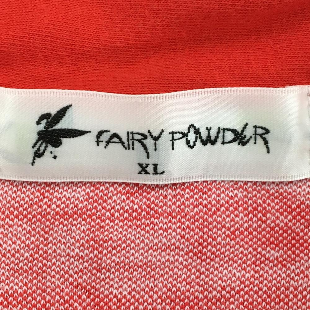 【美品】フェアリーパウダー 半袖ポロシャツ レッド×白 総柄 ロゴ刺しゅう ハーフジップ メンズ XL ゴルフウェア FAIRY POWDER
