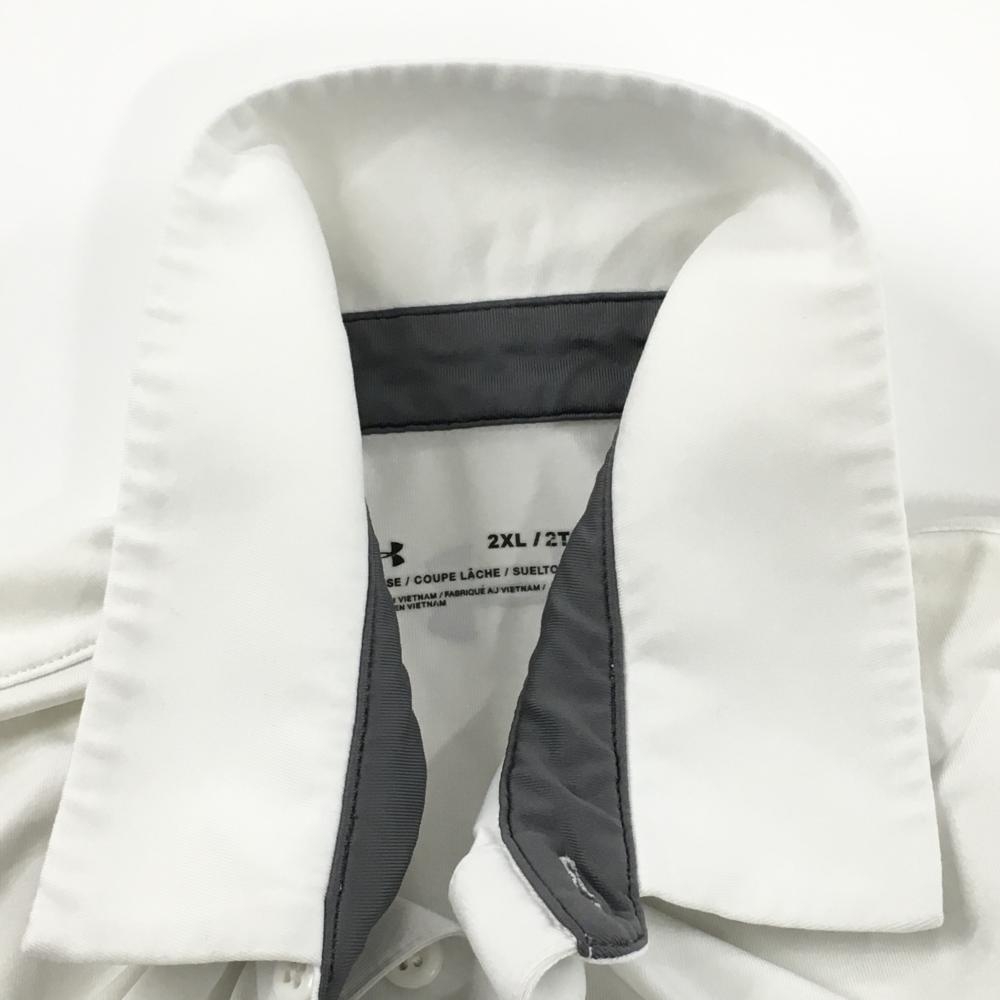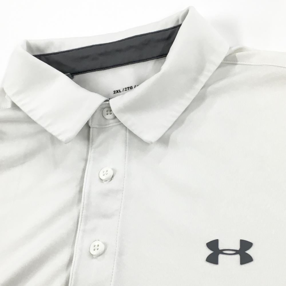 【美品】アンダーアーマー 半袖ポロシャツ 白 ロゴダークグレー 胸元ロゴ メンズ 2XL/2TG/2XG ゴルフウェア 大きいサイズ UNDER ARMOUR