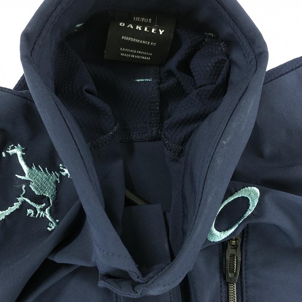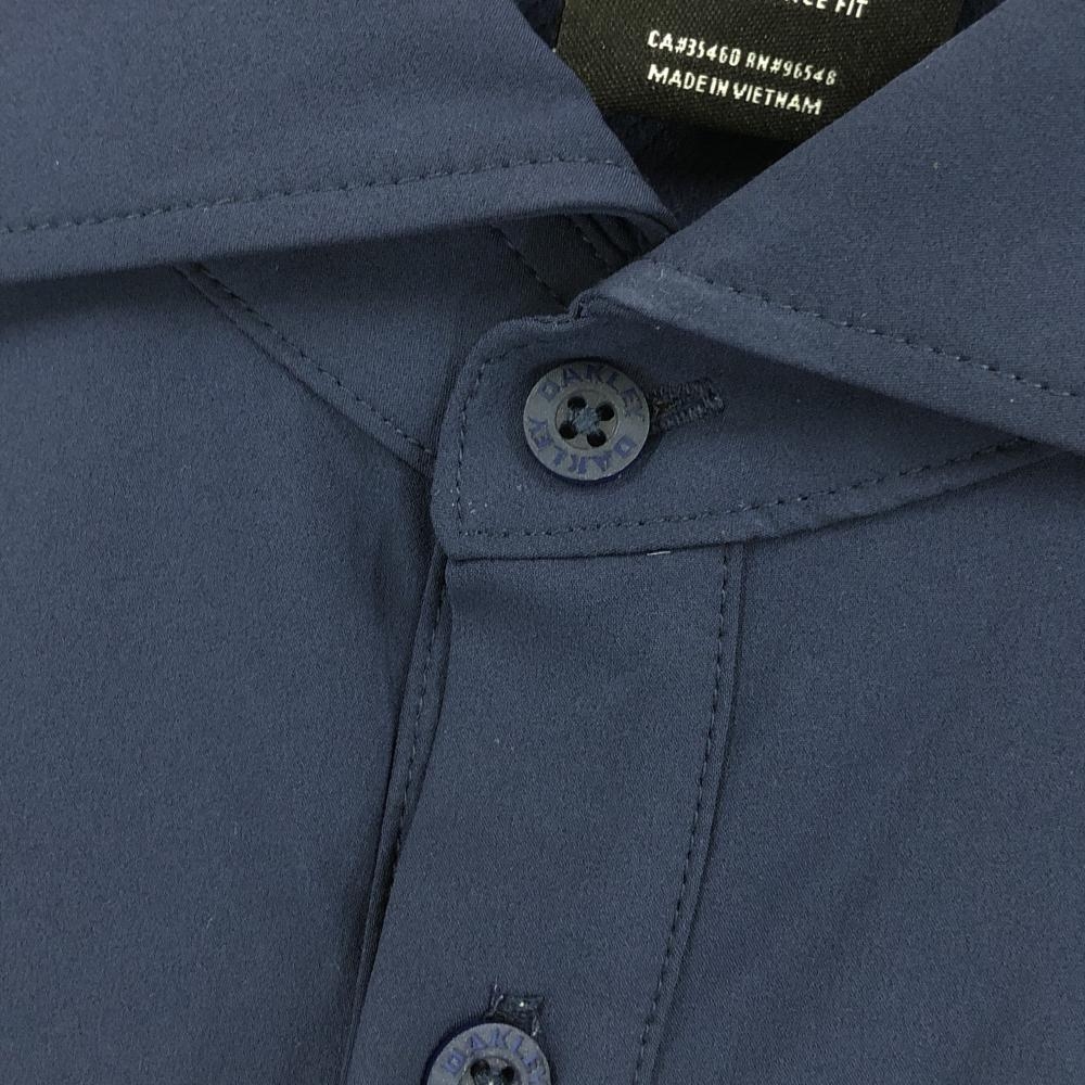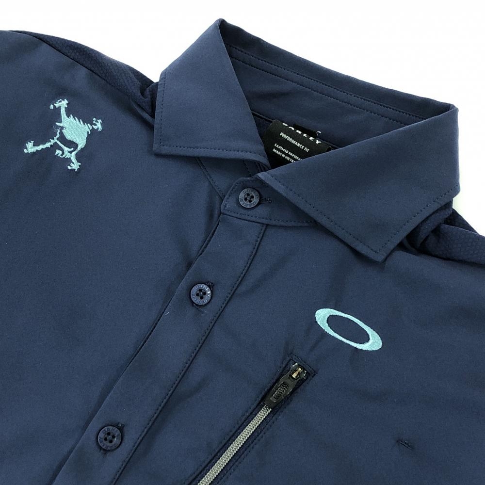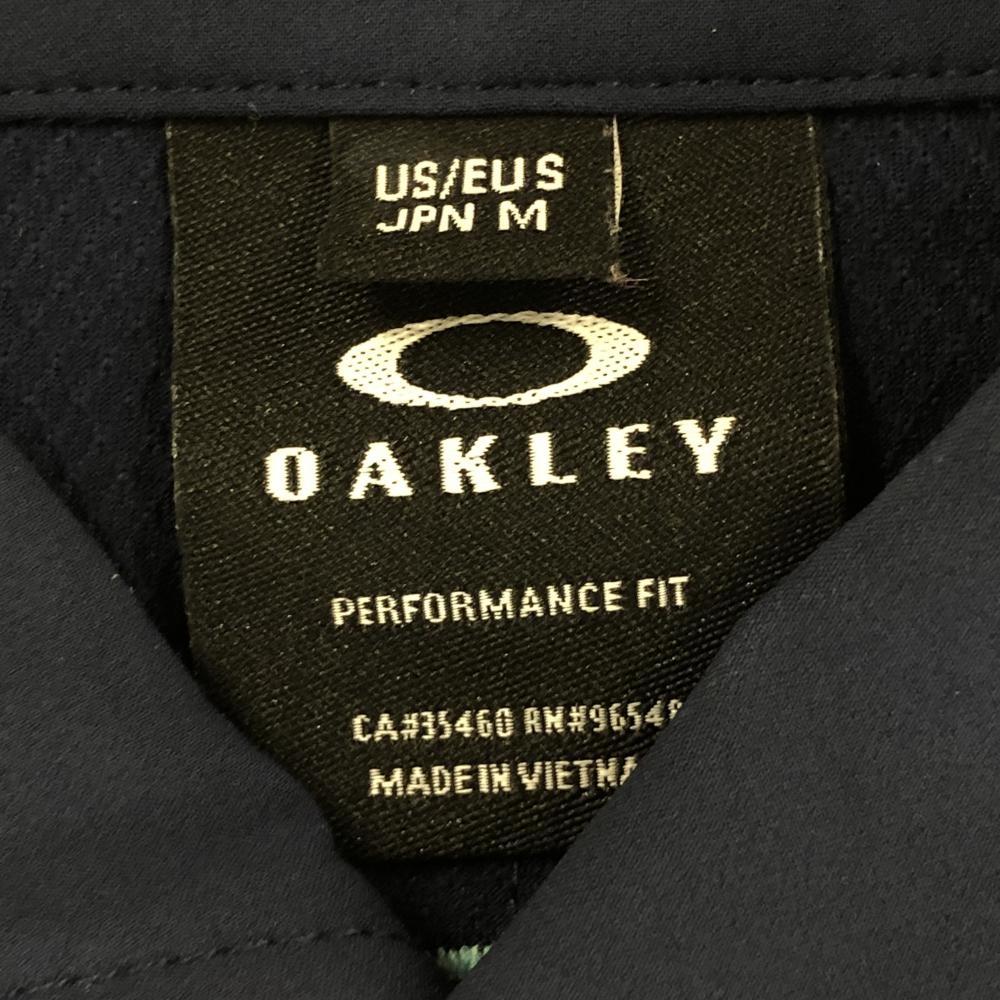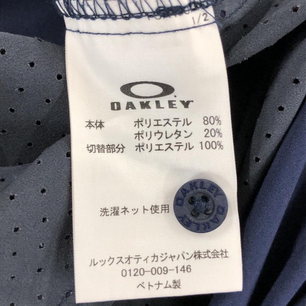 オークリー 半袖シャツ ネイビー×グレー 裾メッシュ調 ロゴ刺しゅう ティー装着可 メンズ M ゴルフウェア Oakley
