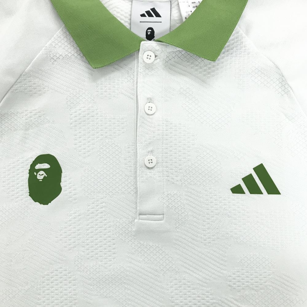 【超美品】アディダス×A BATHING APE 半袖ポロシャツ 白×グリーン メンズ 2XL ゴルフウェア adidas