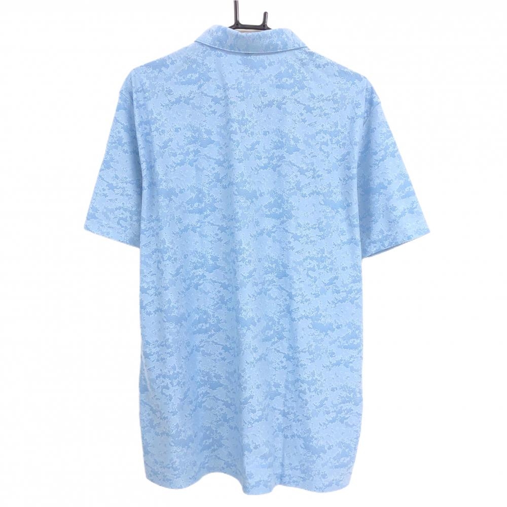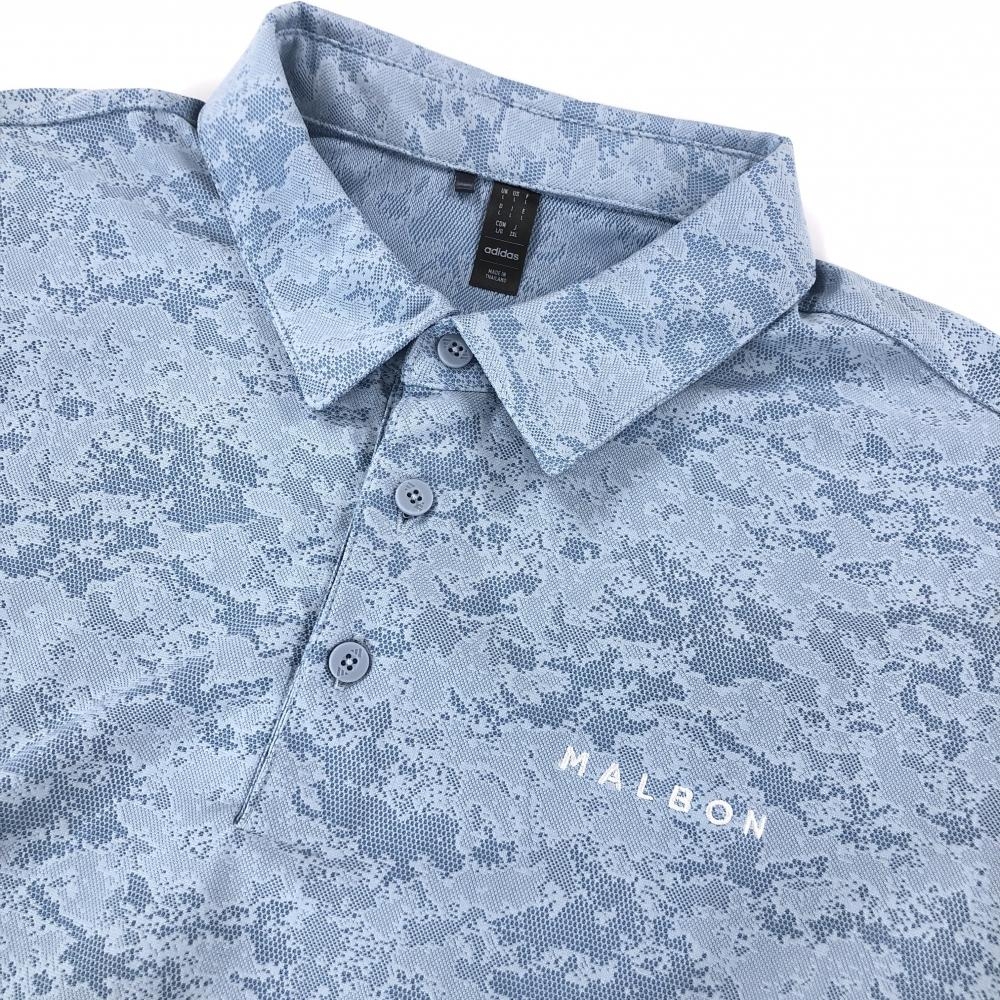 【超美品】アディダス×マルボン 半袖ポロシャツ ライトブルー 総柄 胸刺しゅう メンズ 2XL ゴルフウェア adidas
