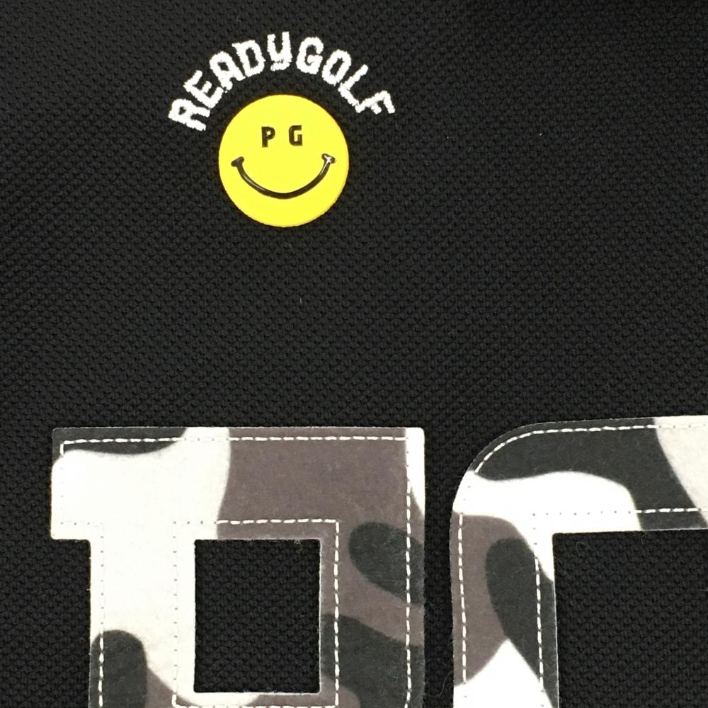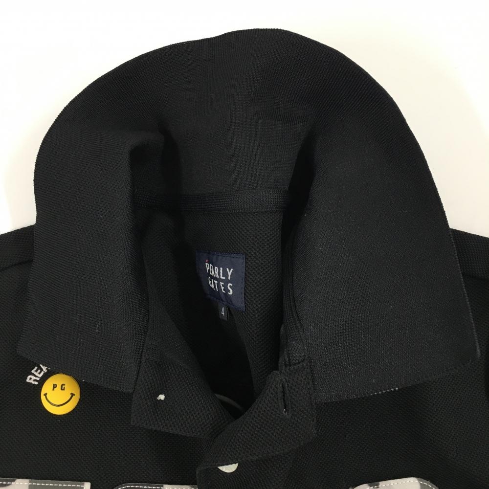【美品】パーリーゲイツ 半袖ポロシャツ 黒×白 フェルトワッペンカモフラ ニコちゃん スマイル メンズ 4(M) ゴルフウェア PEARLY GATES